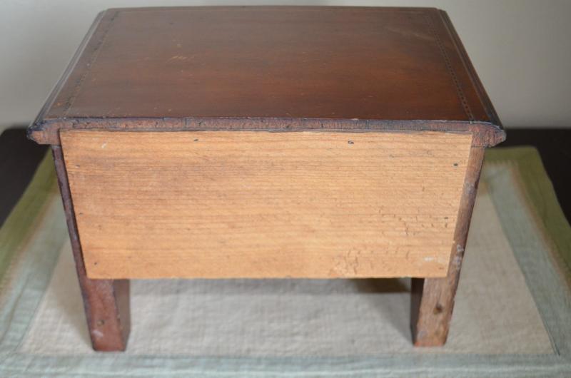 ANTIQUE MINIATURE WOOD 1 DRAWER TABLE 7" TALL INLAYED