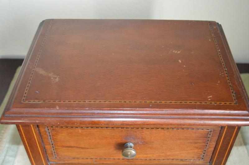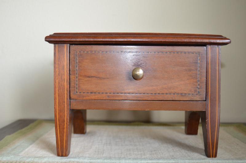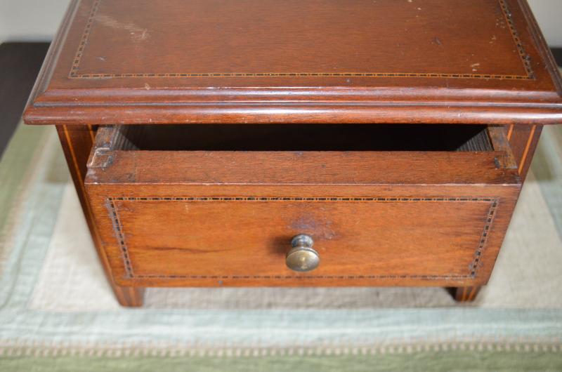 MINIATURE WOOD 1 DRAWER TABLE 7" TALL INLAYED MAHOGANY