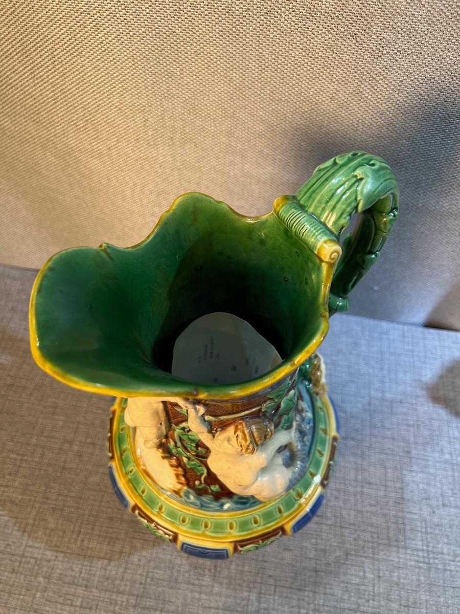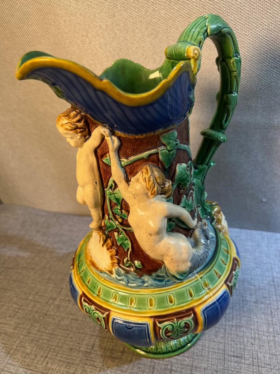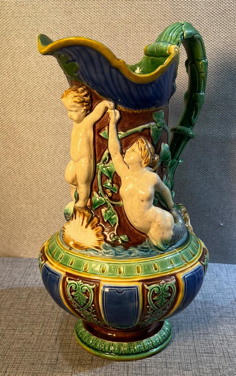 Antique Minton Majolica Pitcher Cherubs Mermaid