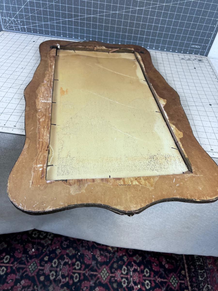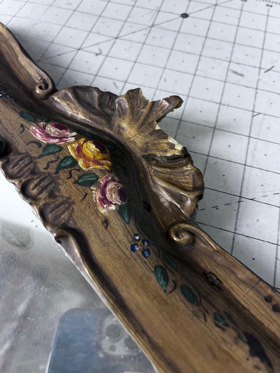 A little Damage to the Frame. Jesso or Plaster Over wood design on frame. Measures 31 x 18
