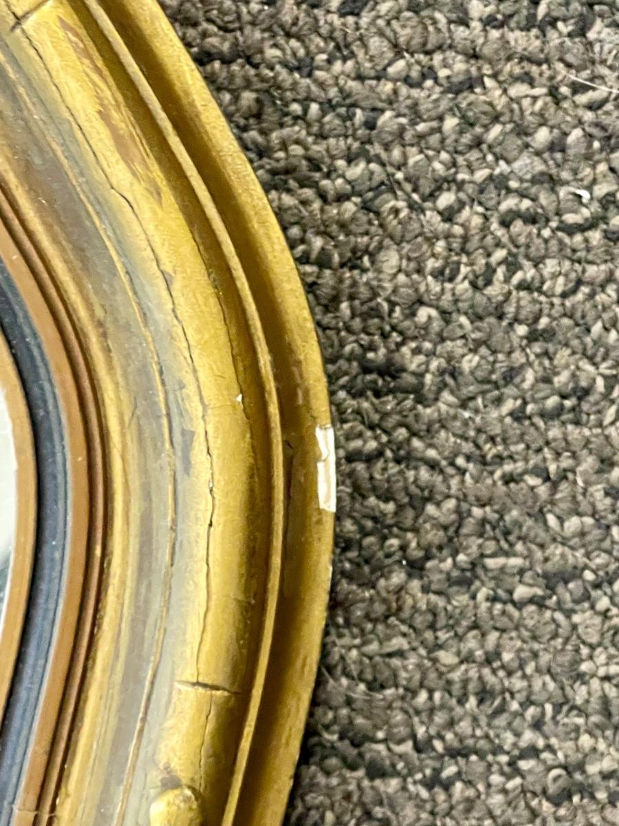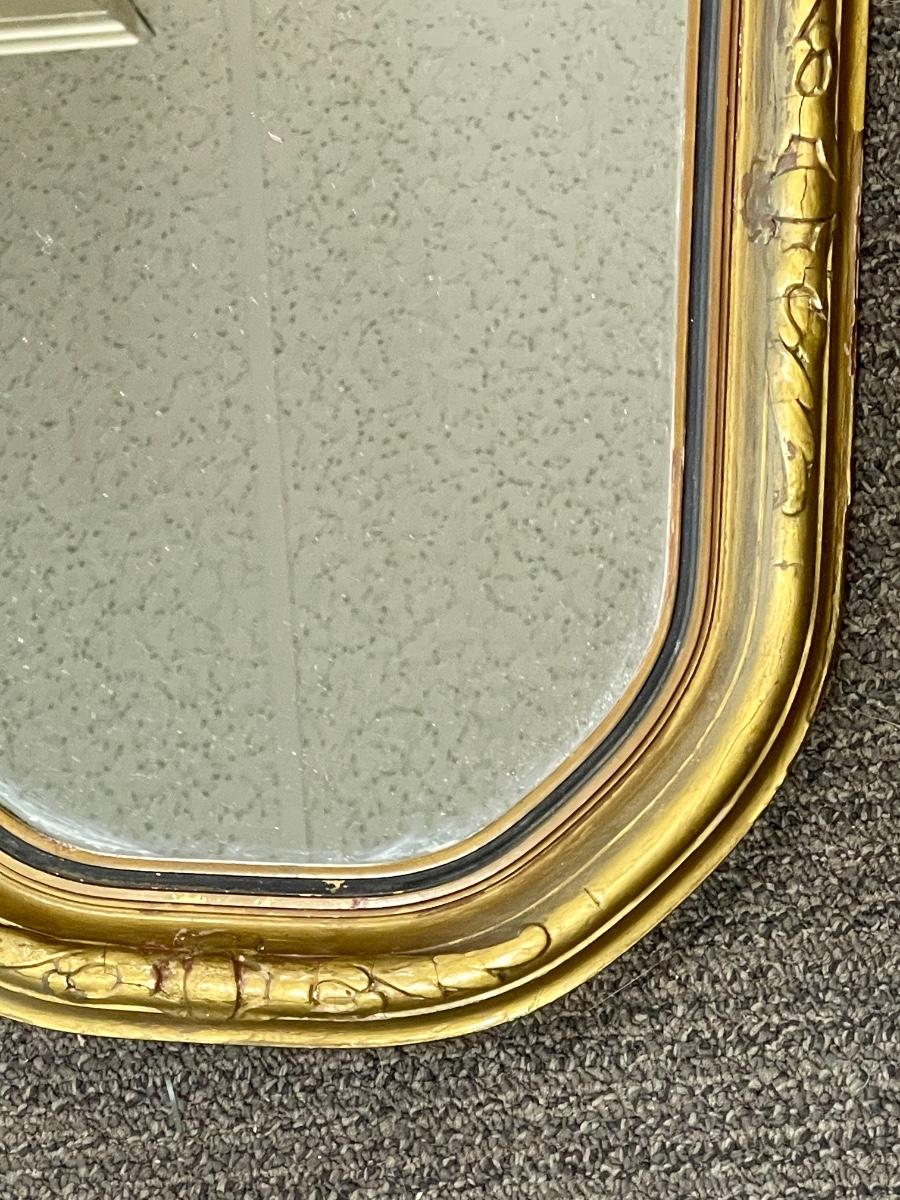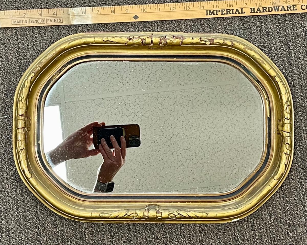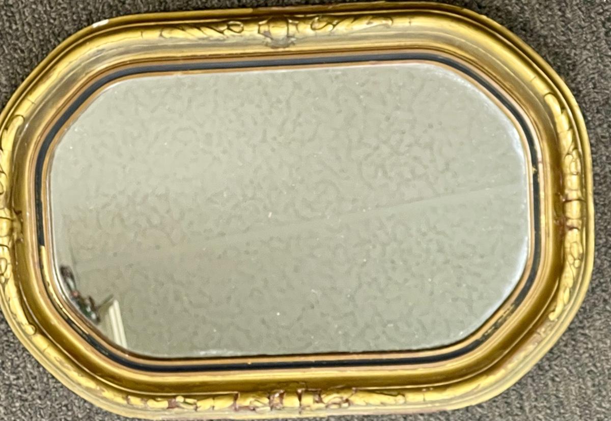 Vintage Oblong Gold Painted Frame Wall Mirror. In vintage condition. Frame has a couple chips in the paint. About 20" size.