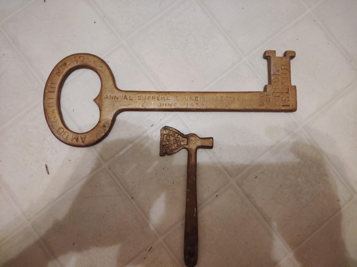 antique lot, presidential pins, cigar box opener, 1922 session key