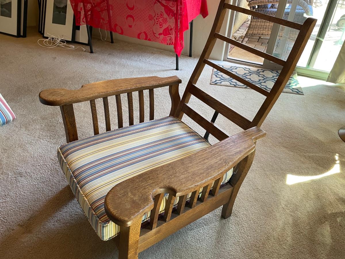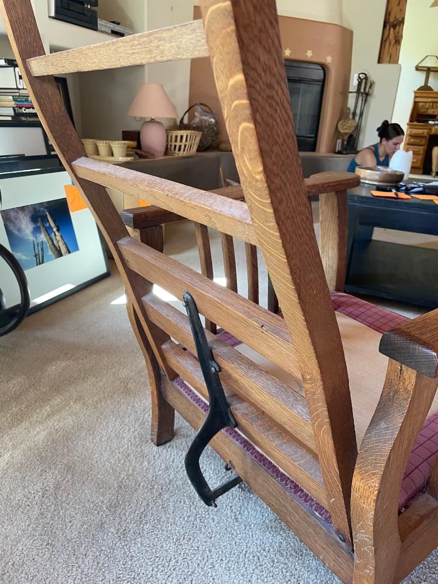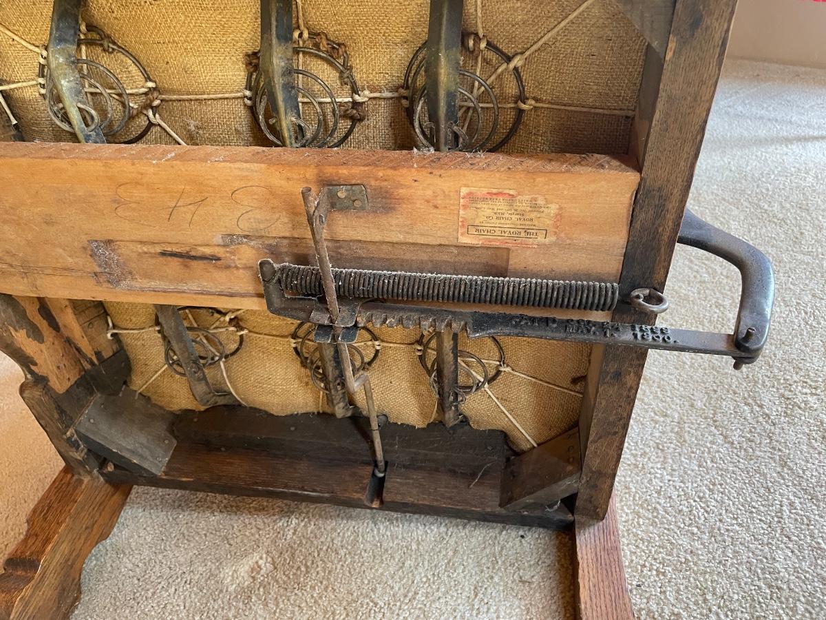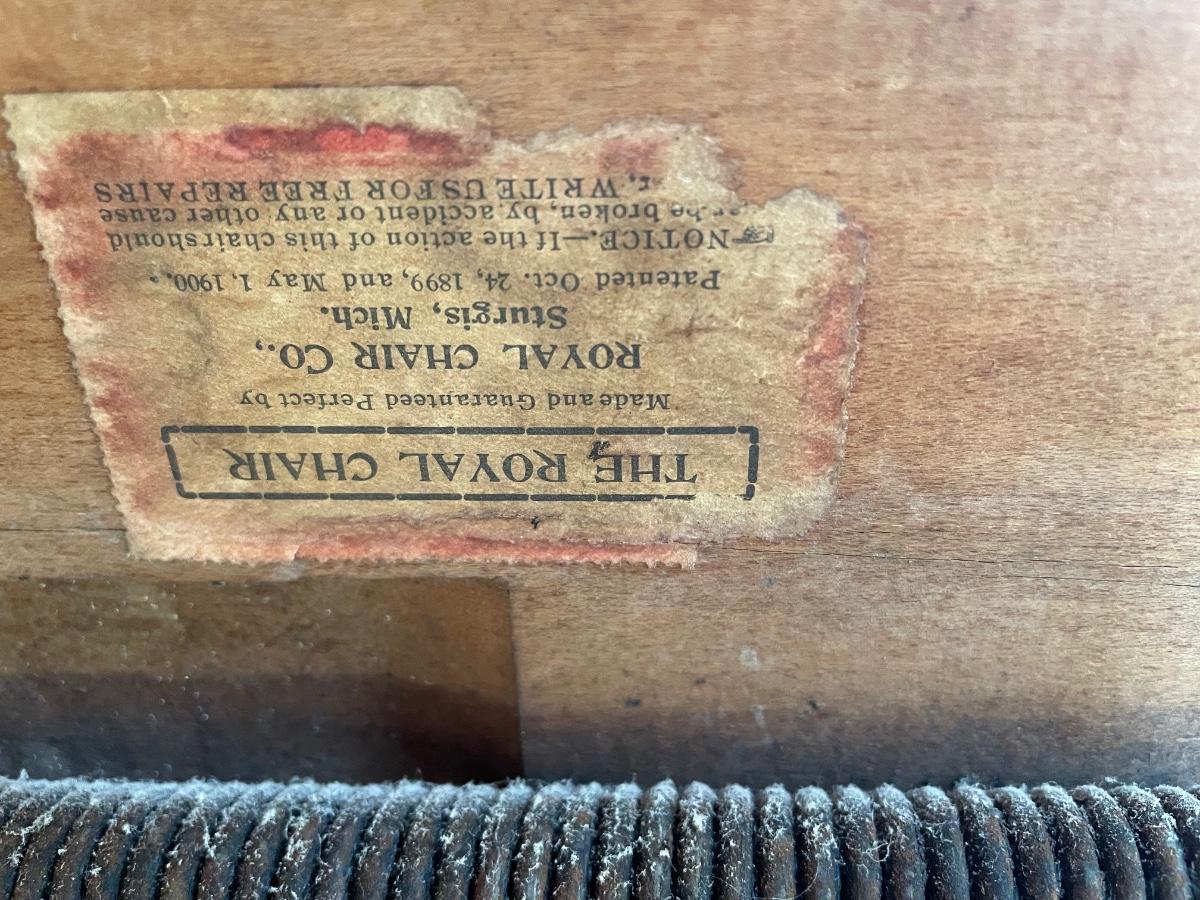 Antique mission style chair in good condition. “The Royal Chair” by The Royal Chair Michigan 1899. (32inX30inX39in)