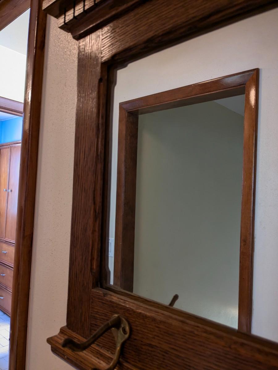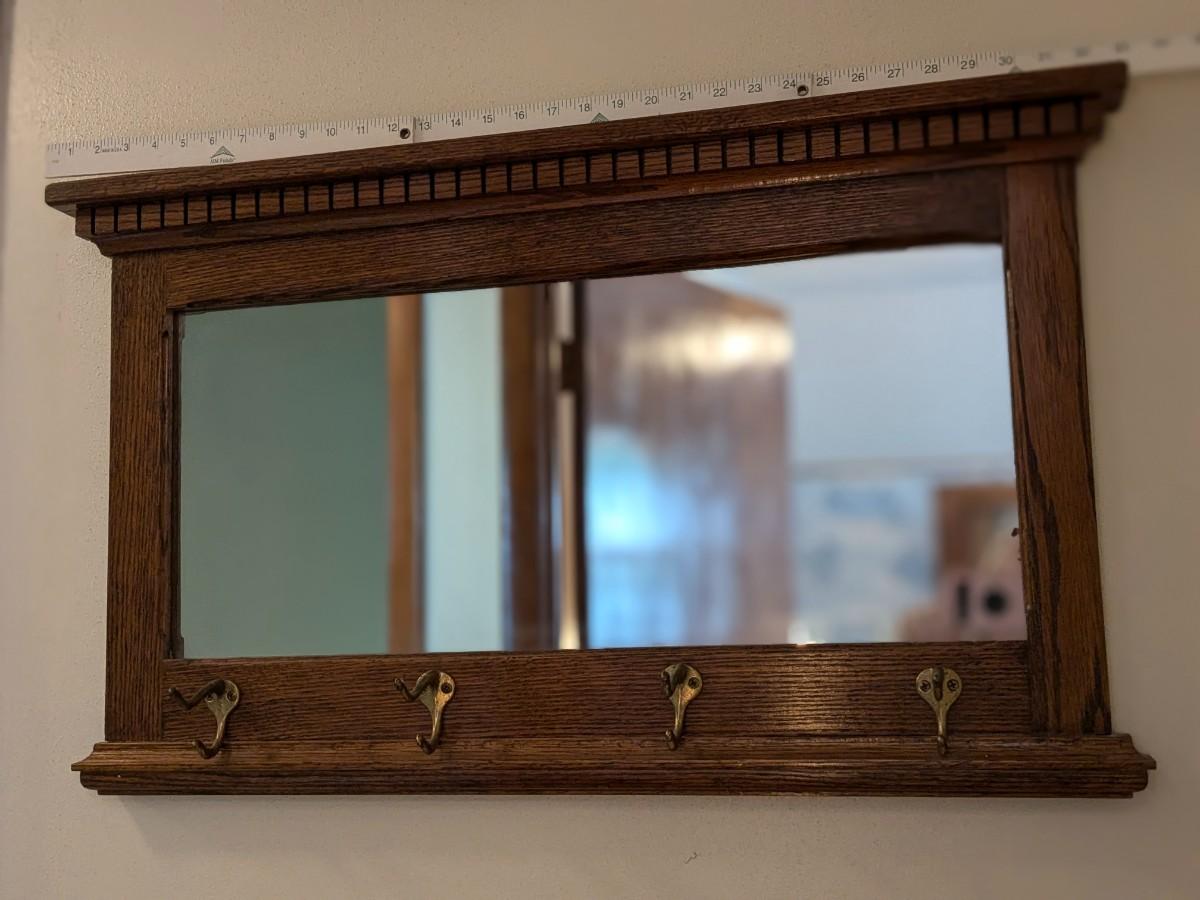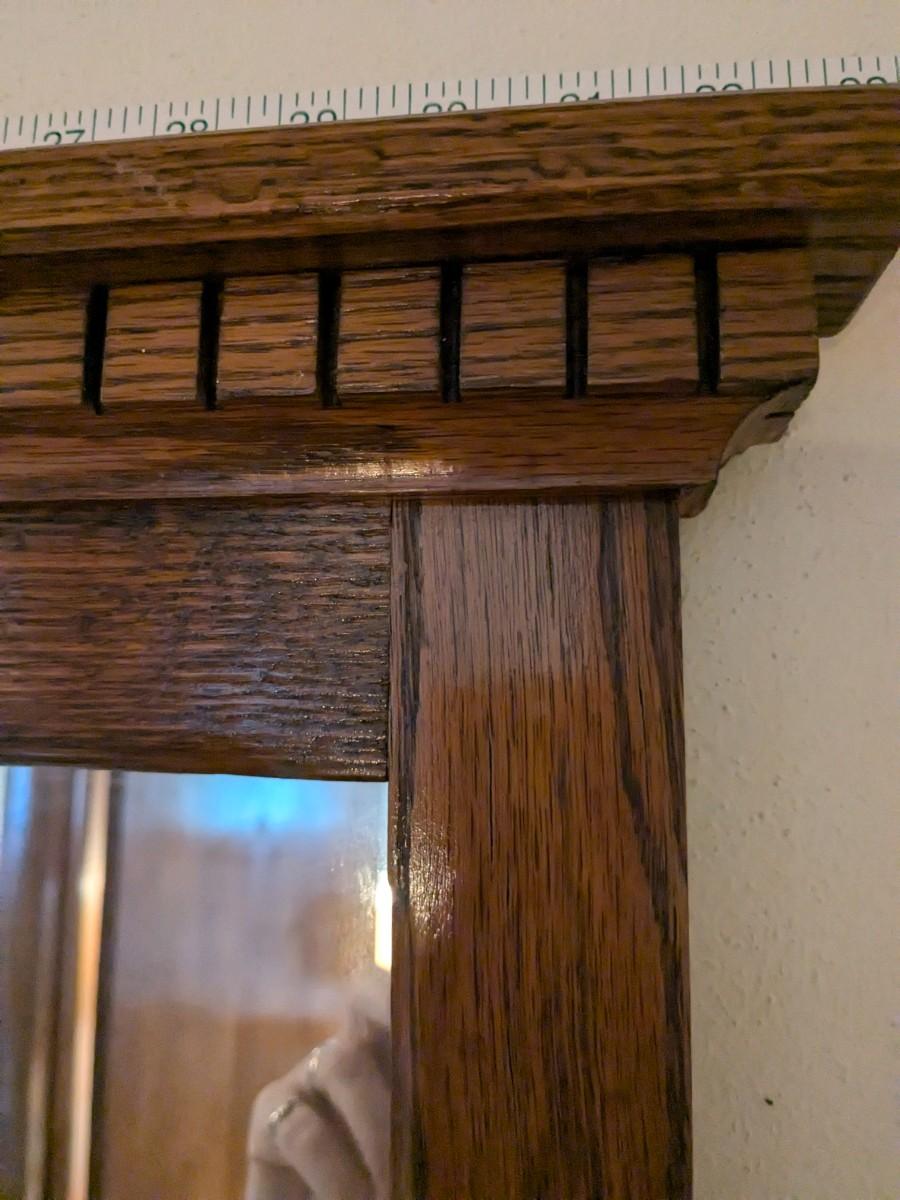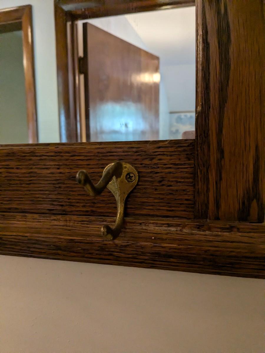 Antique Mission Style Oak Hall Mirror and Coat Hooks