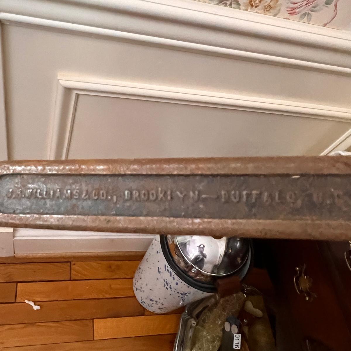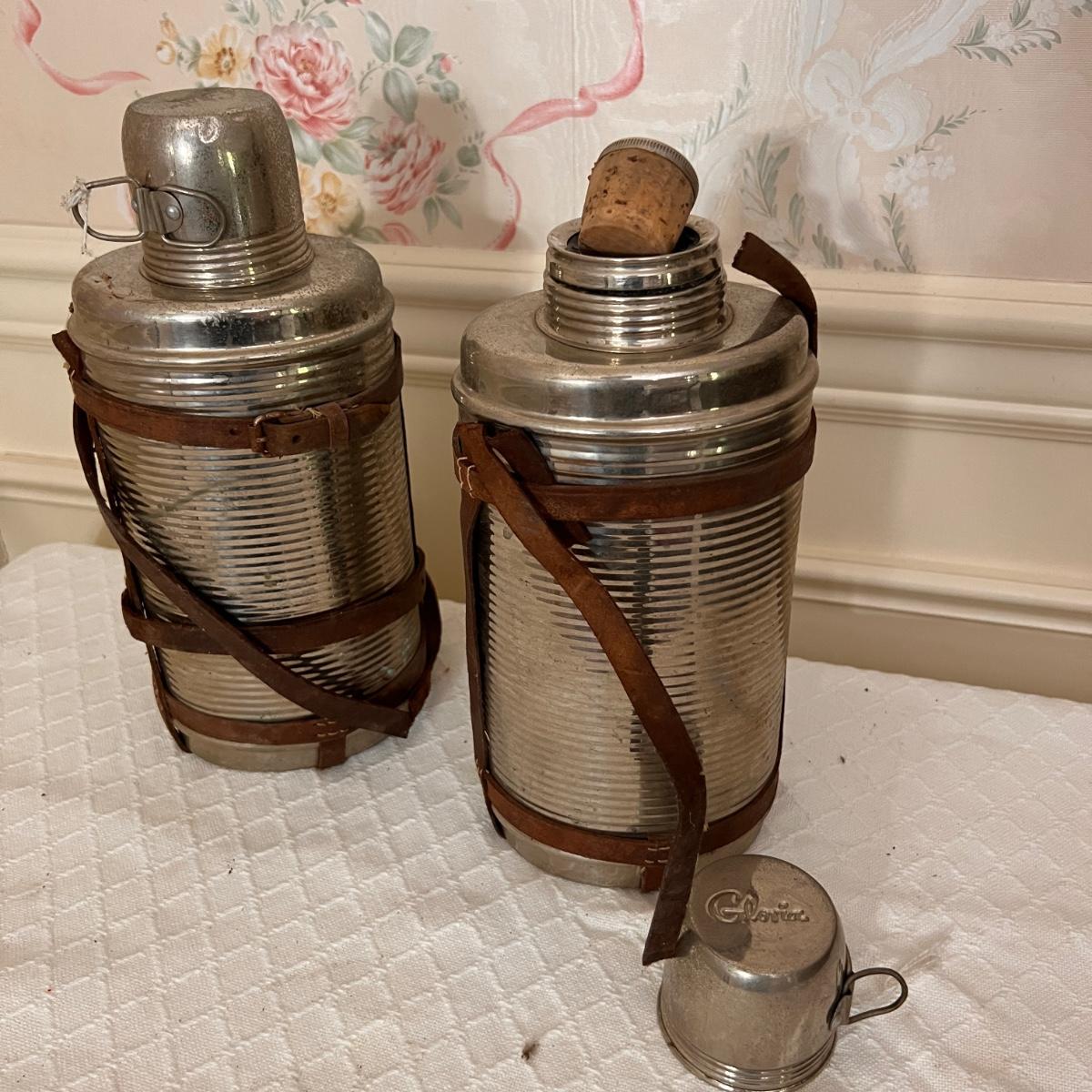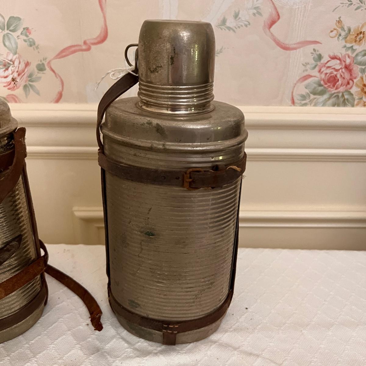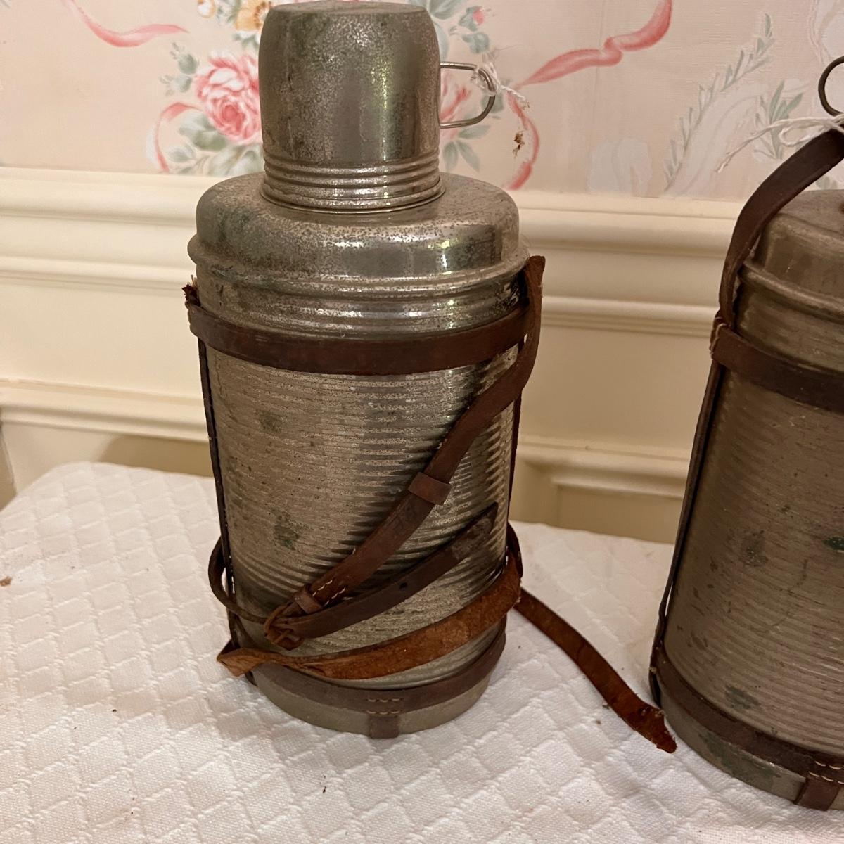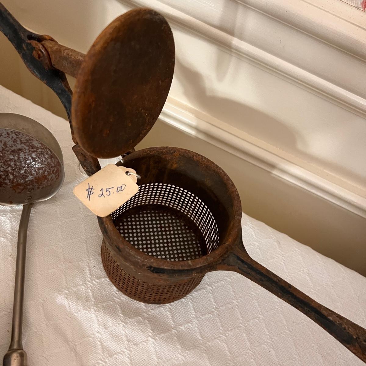 Pieces have their original antique store tags on them. Metal egg box, 1914 tool, switch lock and chain, 2 Gloria thermoses, cow bell and more. See all pics for condition.
