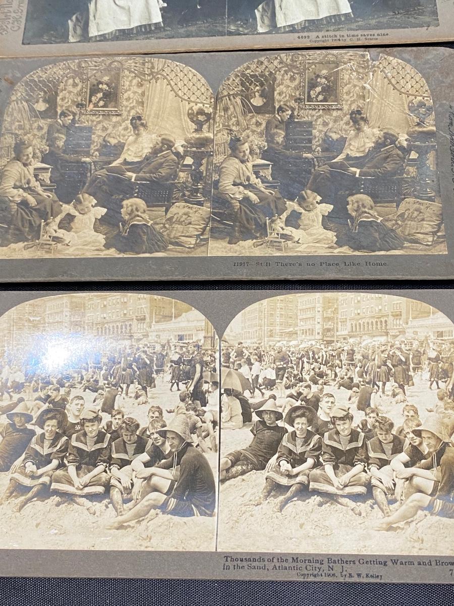 Antique Mixed Lot of Stereoscope Cards Families People at the Beach Couples
