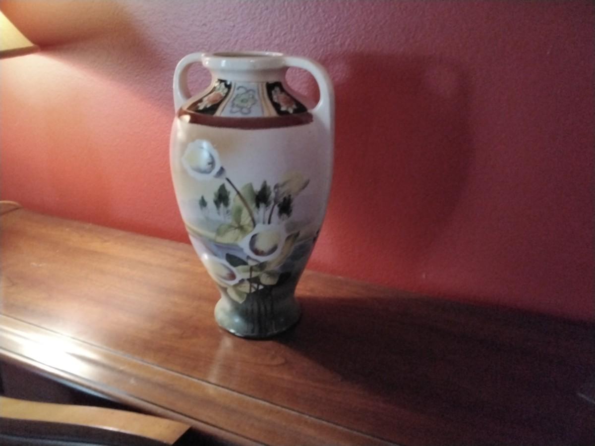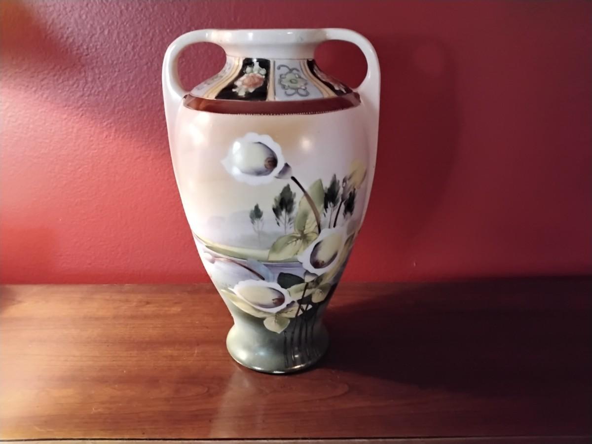 An absolutely gorgeous piece with handpainted scenes and 24k gold paint. Since the law required the country of origin to be an English word, the use of "Nippon" was forbidden from 1921 on. The period between the passage of the McKinley Act in 1890 and the English word ruling in 1921 is the only time "Nippon" appeared in authentic marks. There is crazing, mostly on the bottom, which is customary with a piece this old. This one is the style they used in 1890 and the family it belonged to verified that. Height 12" and 6" round