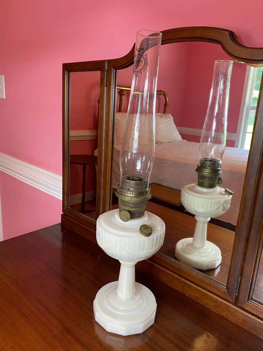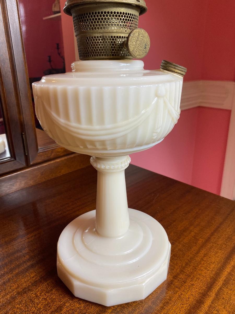 Antique Model B Aladdin Oil Lamp Milk Glass Lincoln Drape