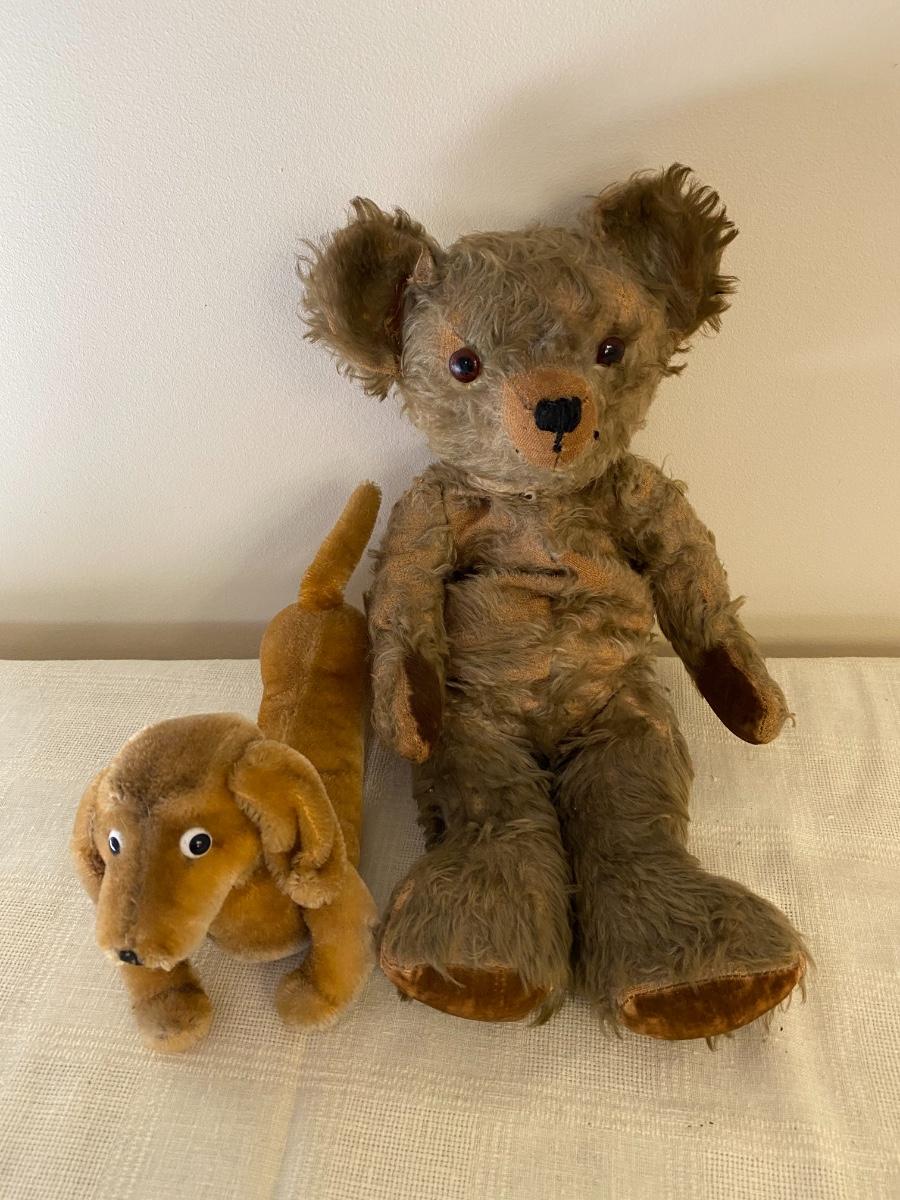 Antique Mohair Bear and Steiff Dachshund Dog