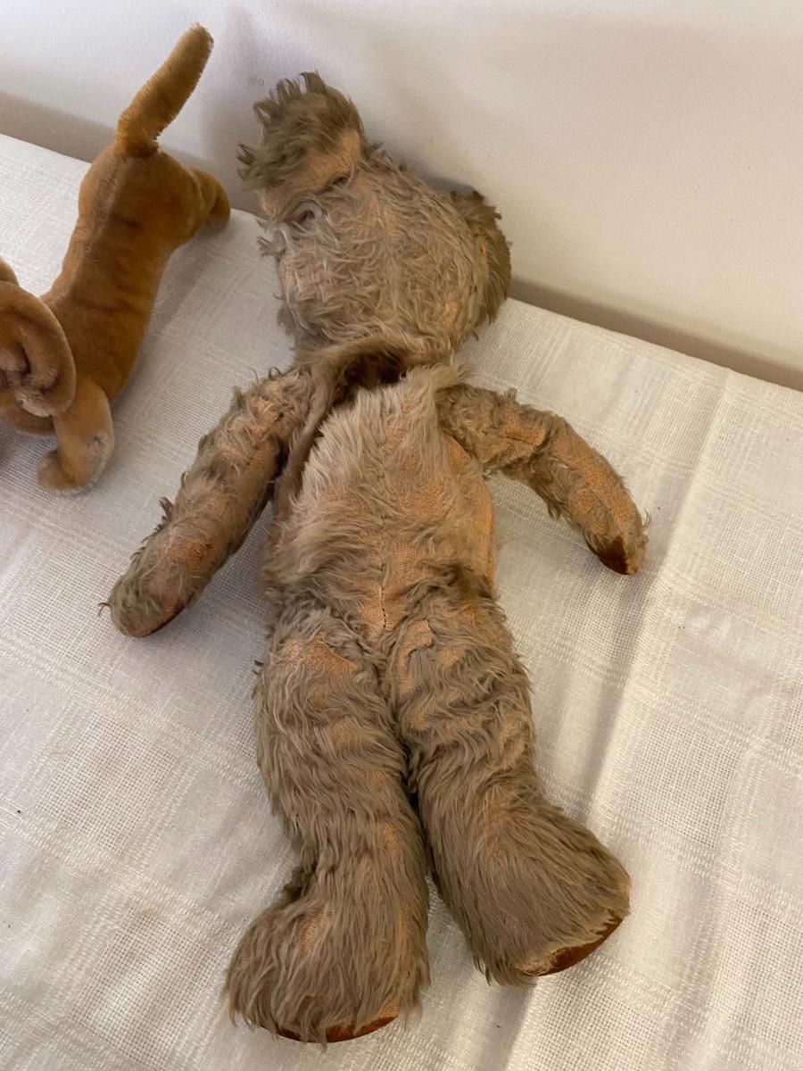 Antique  Mohair Bear and Steiff Dachshund Dog