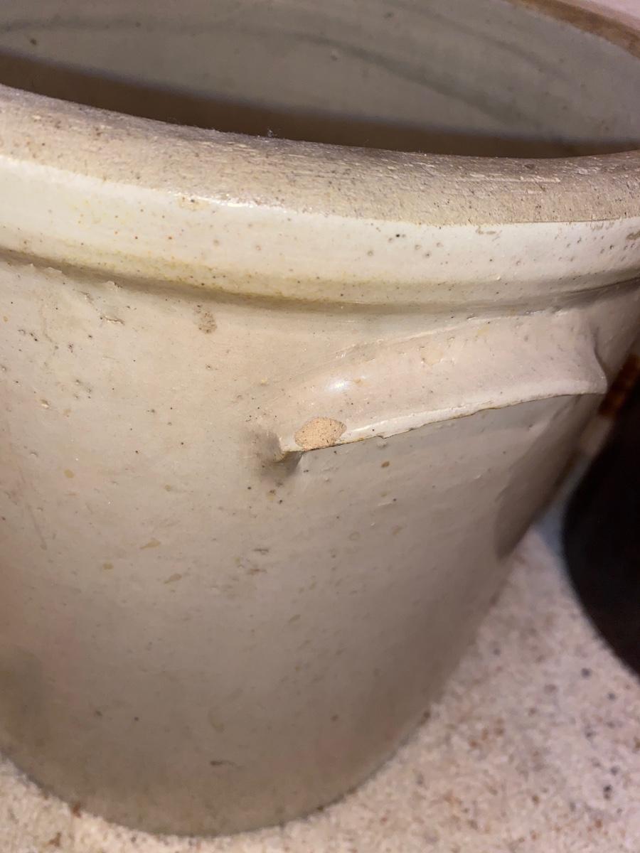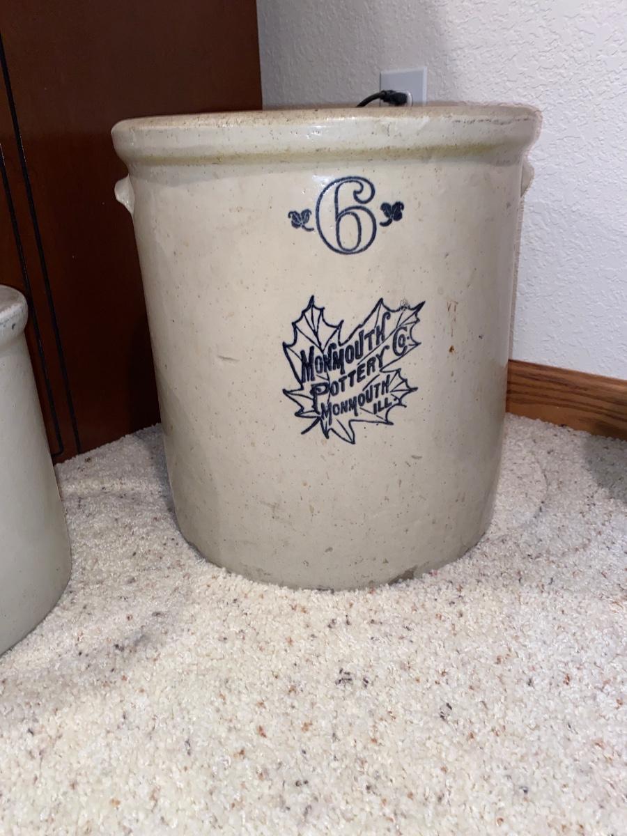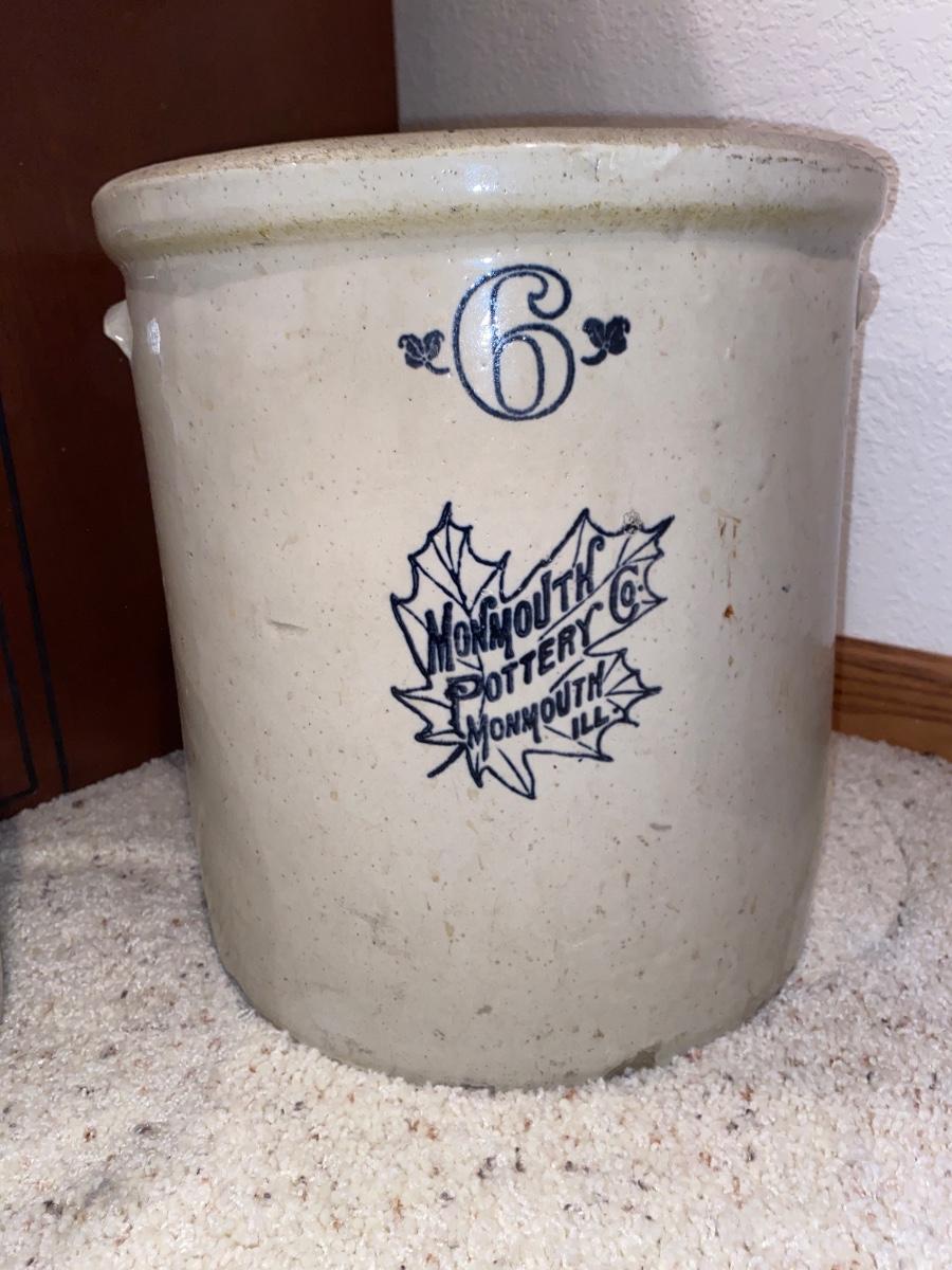 ANTIQUE MONMOUTH POTTERY 6 GALLON STONEWARE CROCK