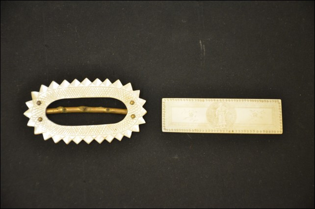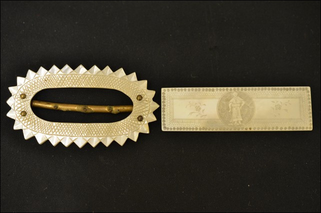 antique mother of pearl buckle and rectangular mother of pearl piece