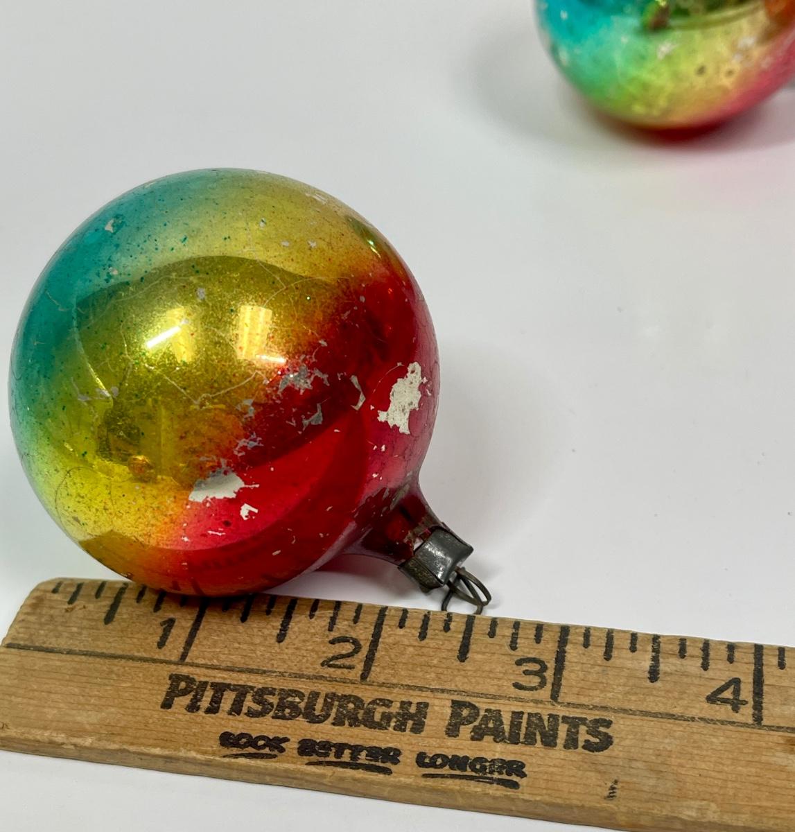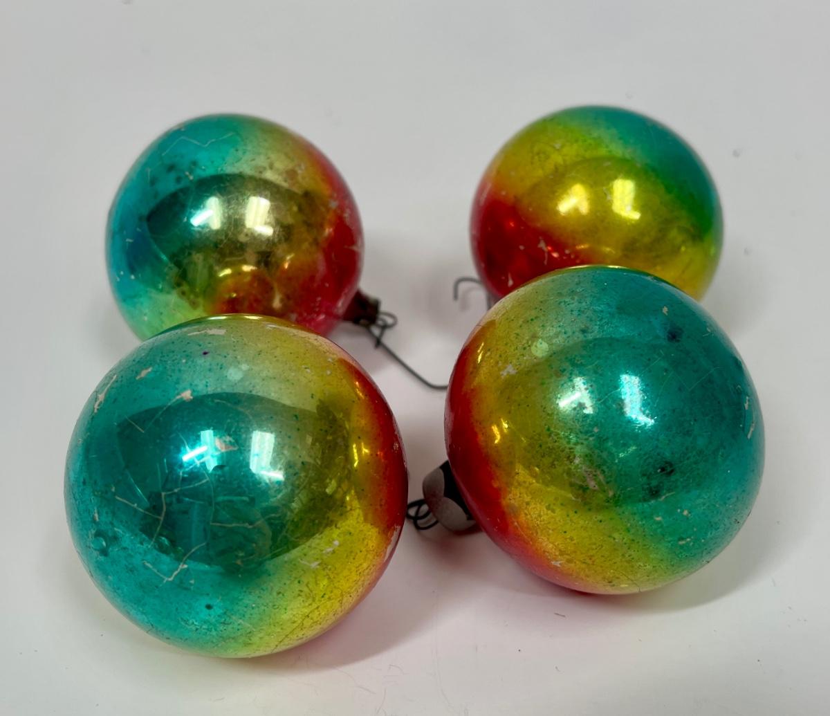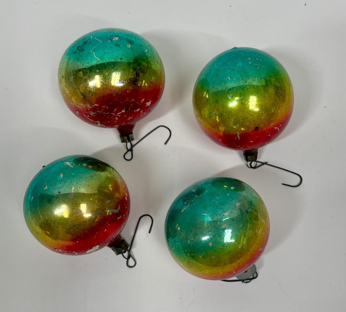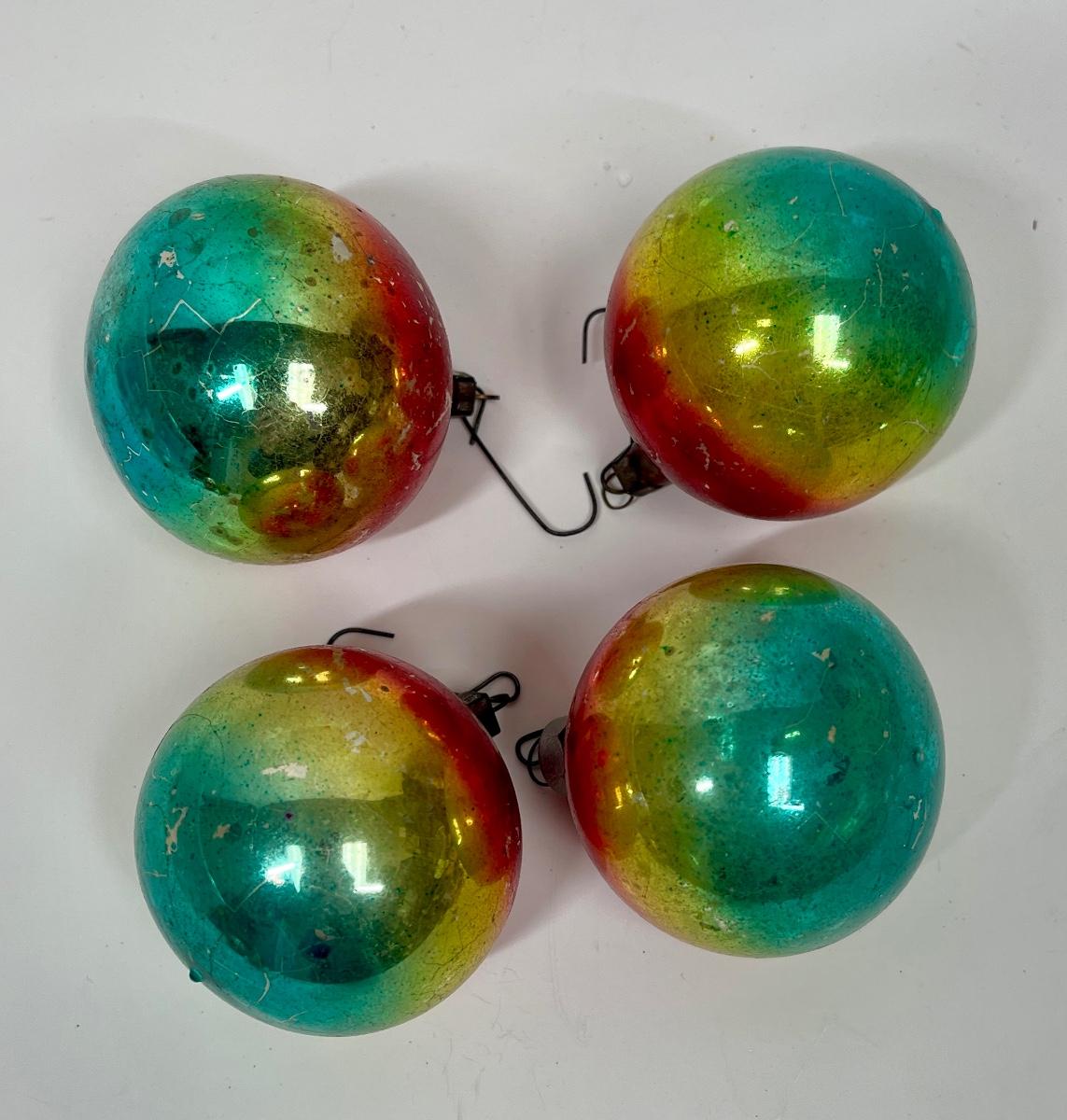 Antique Multicolored Mercury Glass Ball Christmas Tree Ornament Decor West Germany 4 ct
