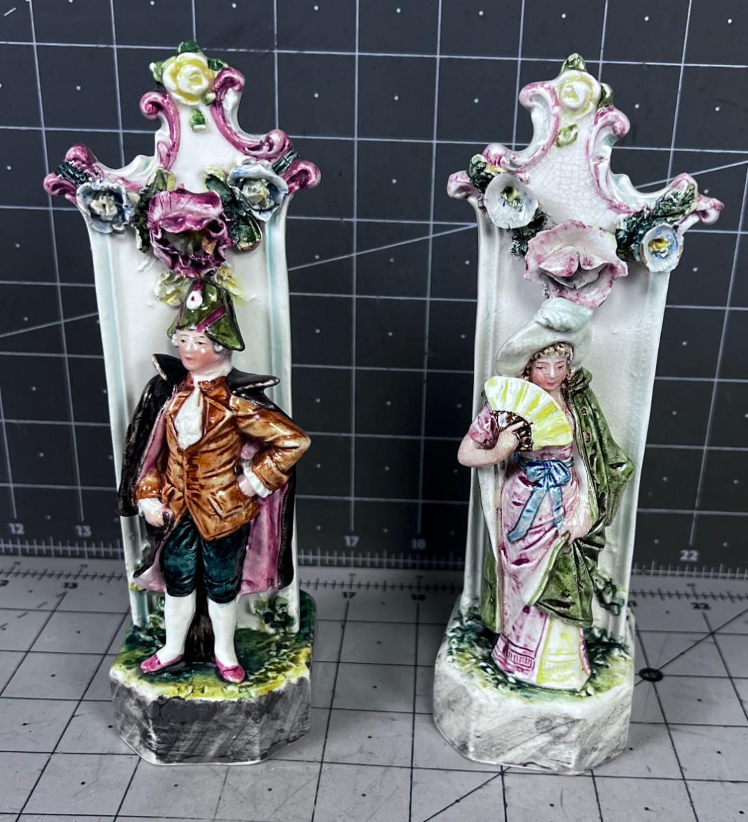 ANTIQUE Napoleonic Figurine Bud Vases (2)