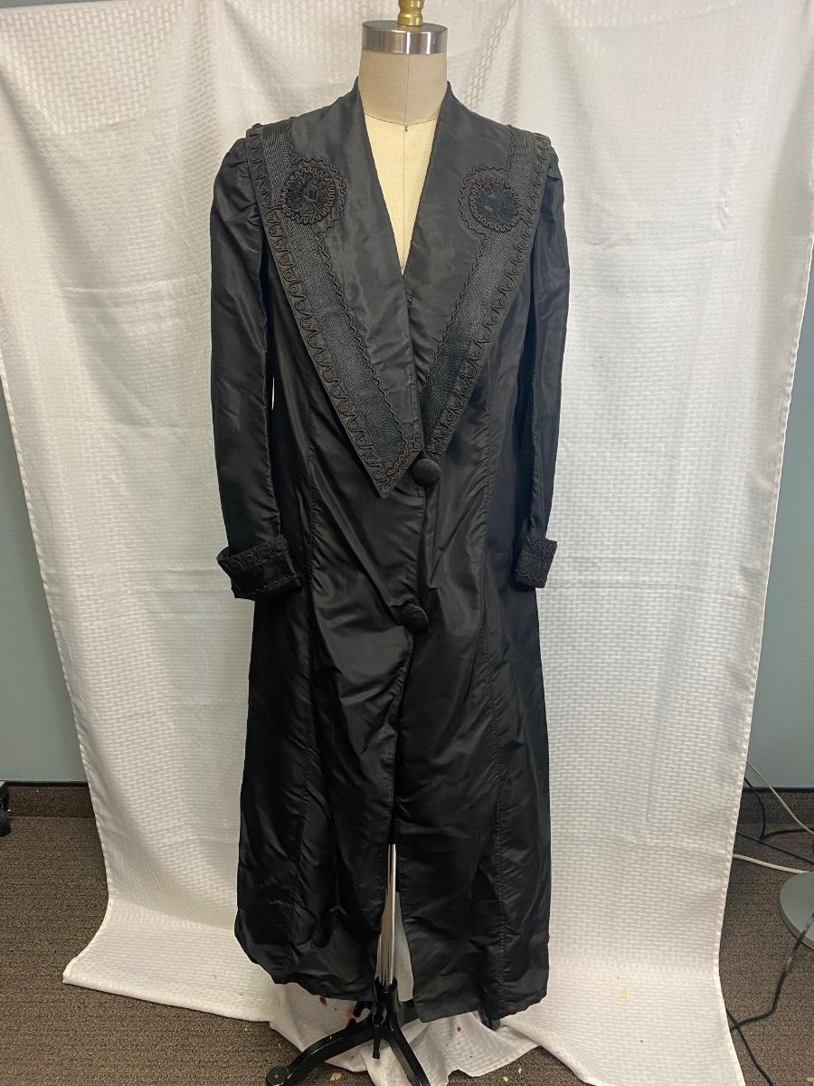 Antique National Cloak & Suit Co. Art Deco Black Trench Coat Jacket Duster