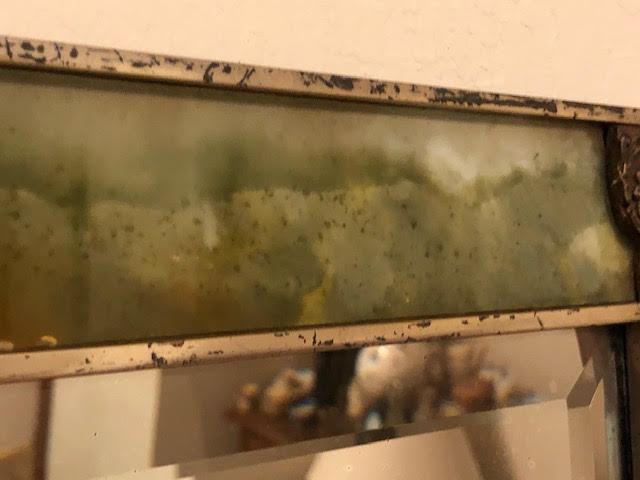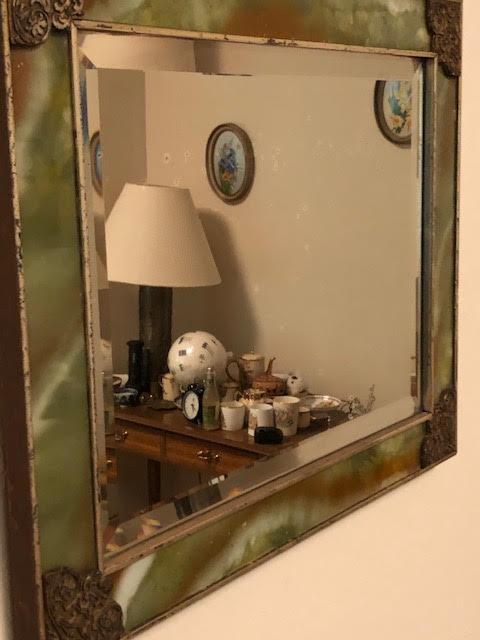 Antique Natural Marble or Stone and Silver Framed Mirror