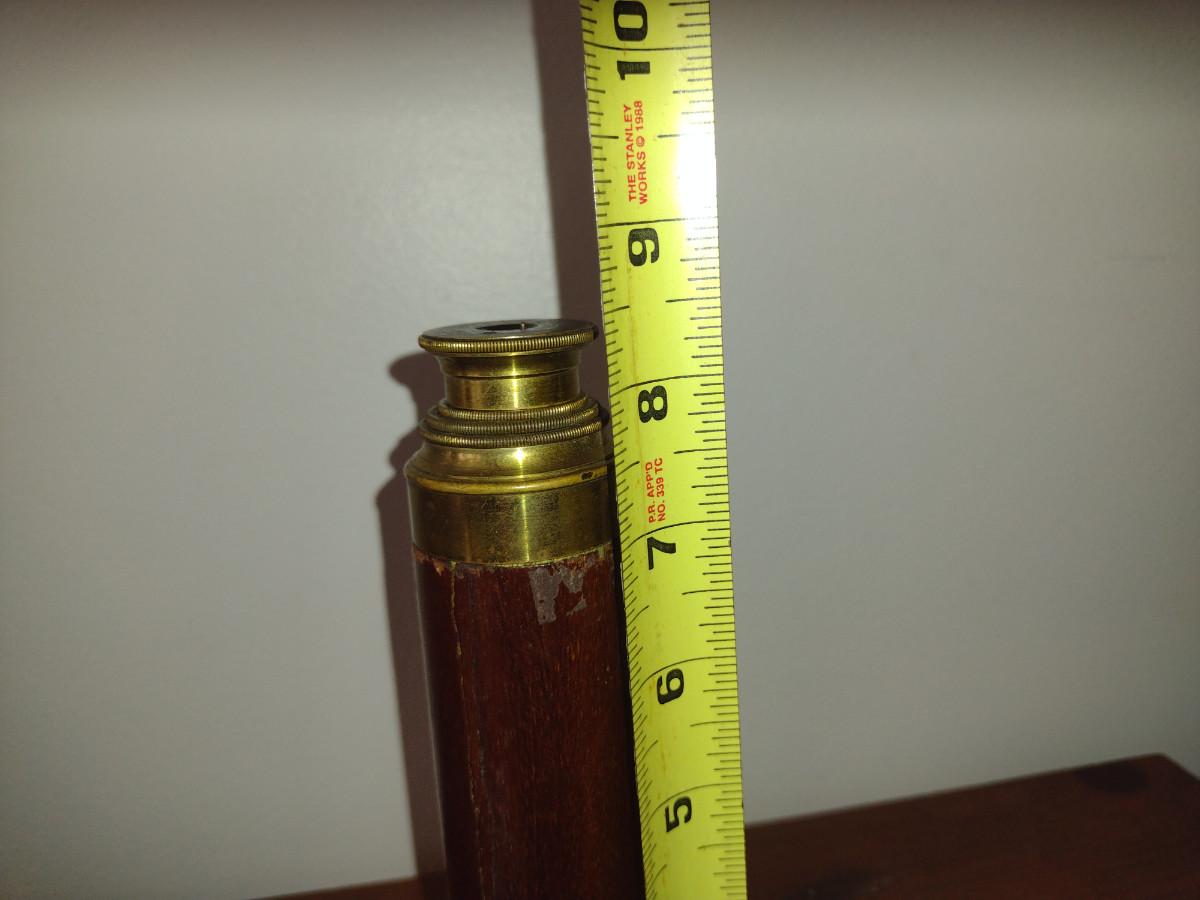 Antique Nautical Telescope. Please see all pictures- damage to wood finish. Item is approx 22 1/2" when fully extended.