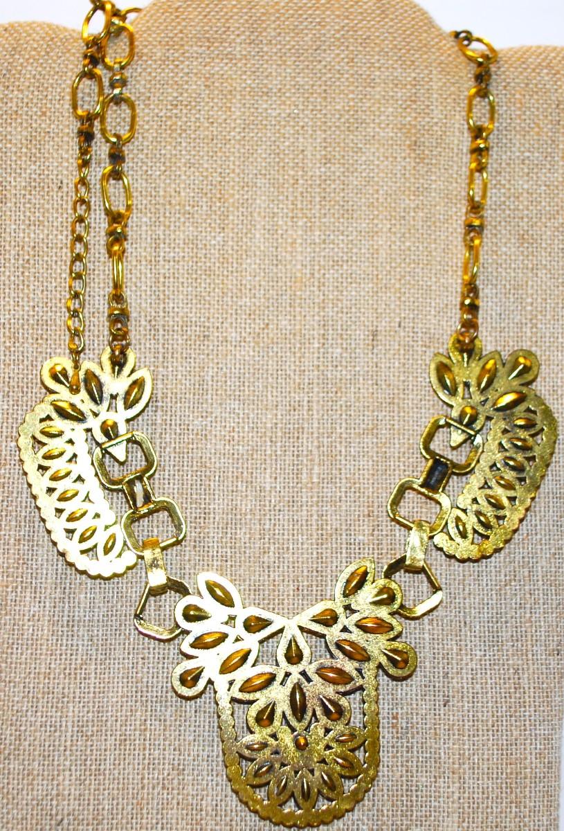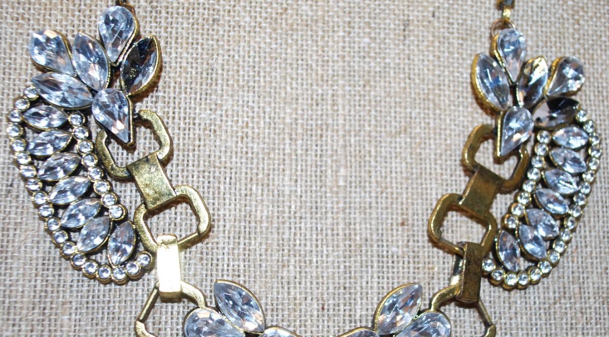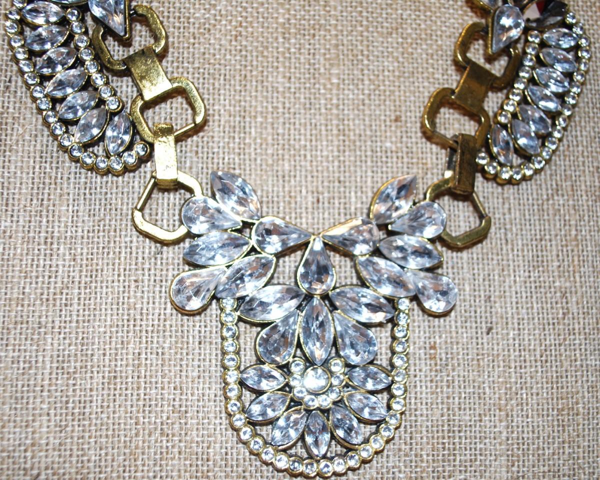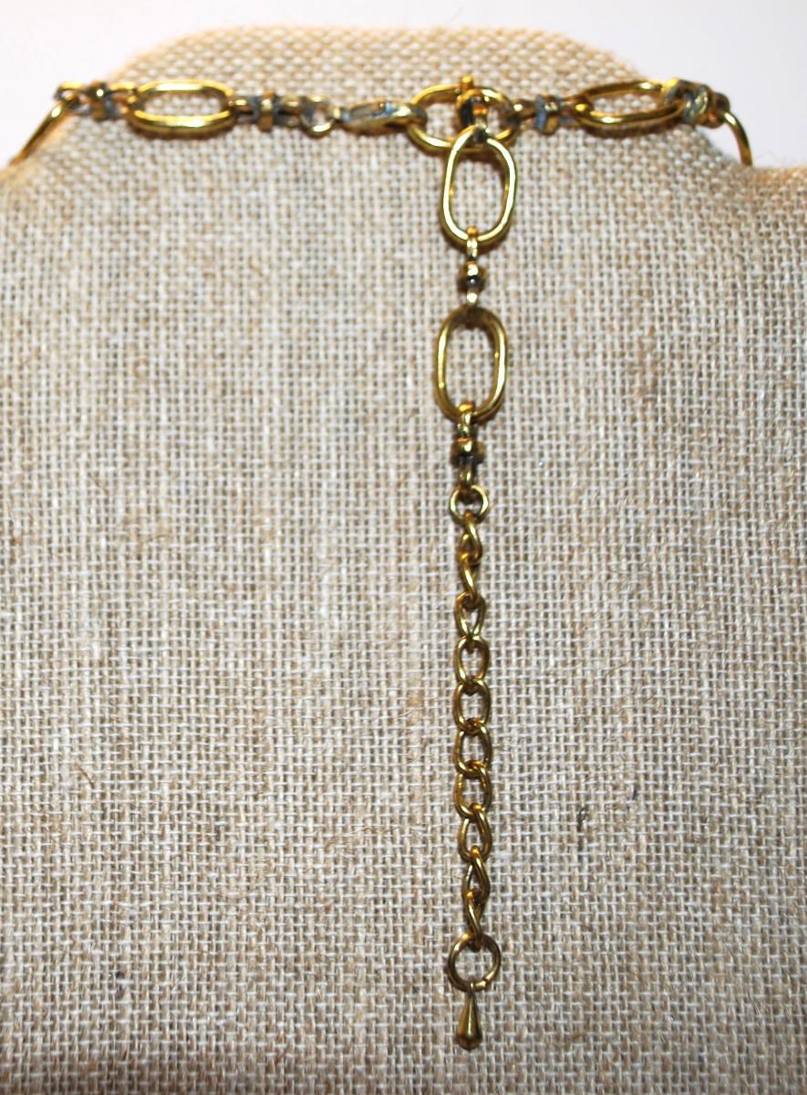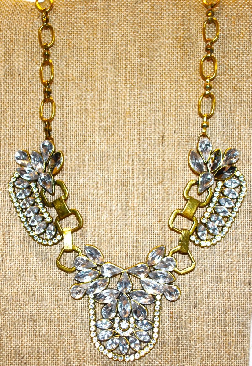 Antique Necklace in 3 "Diamond-Style" Sections with a Heavy Brass Tone Chain 22" L