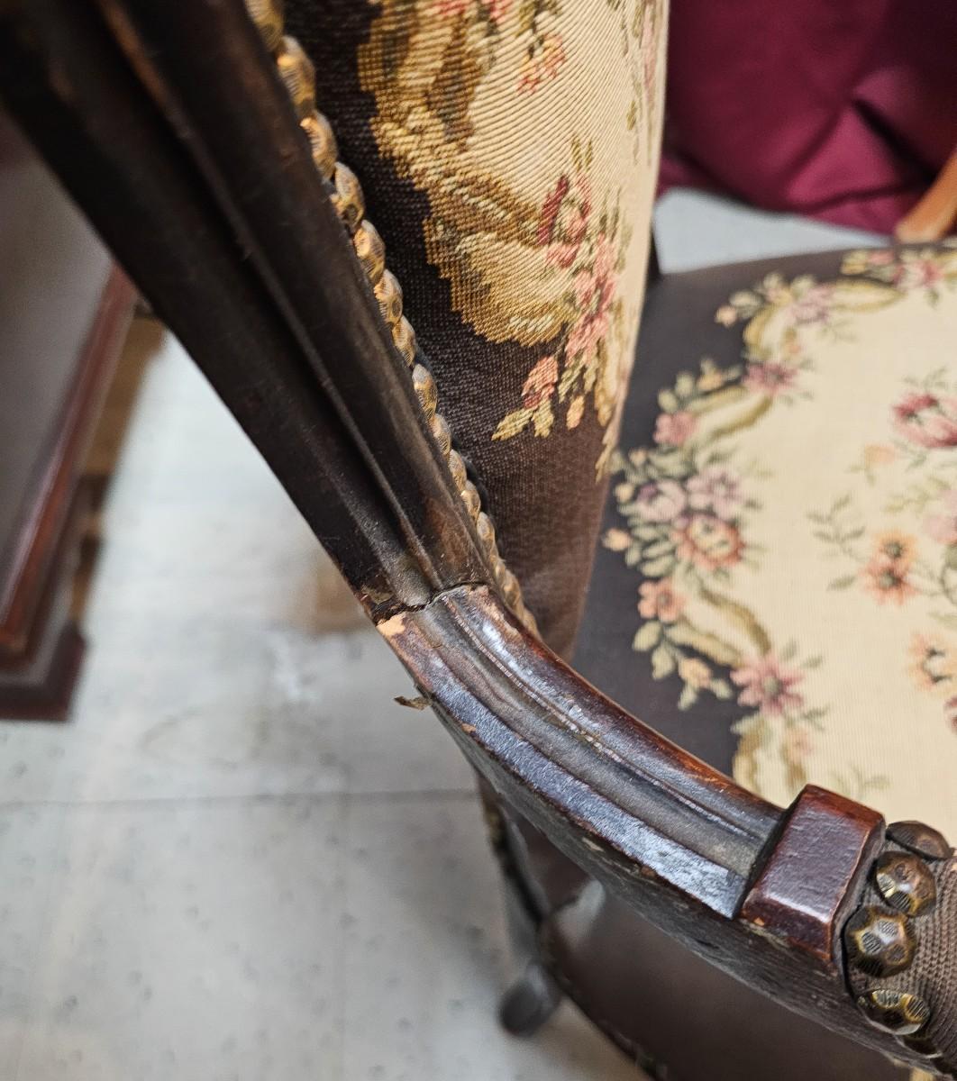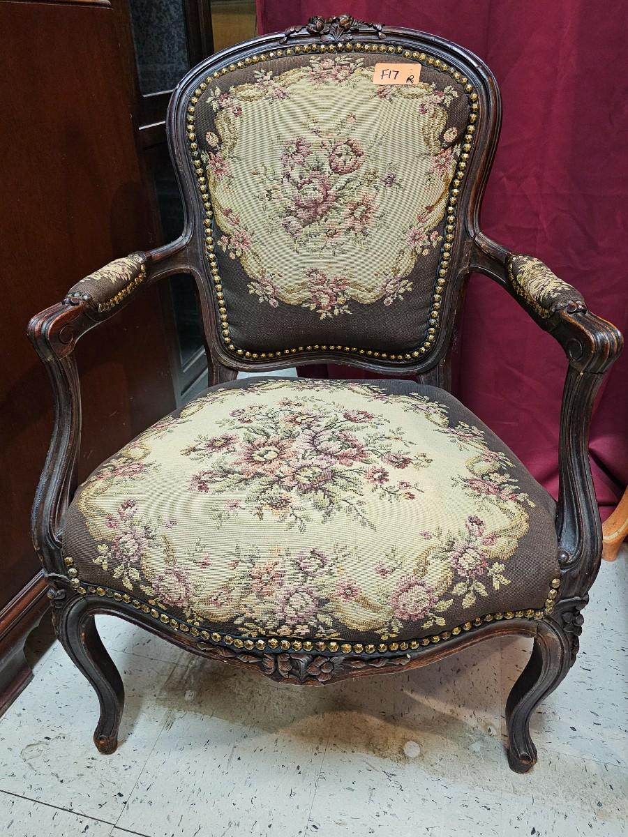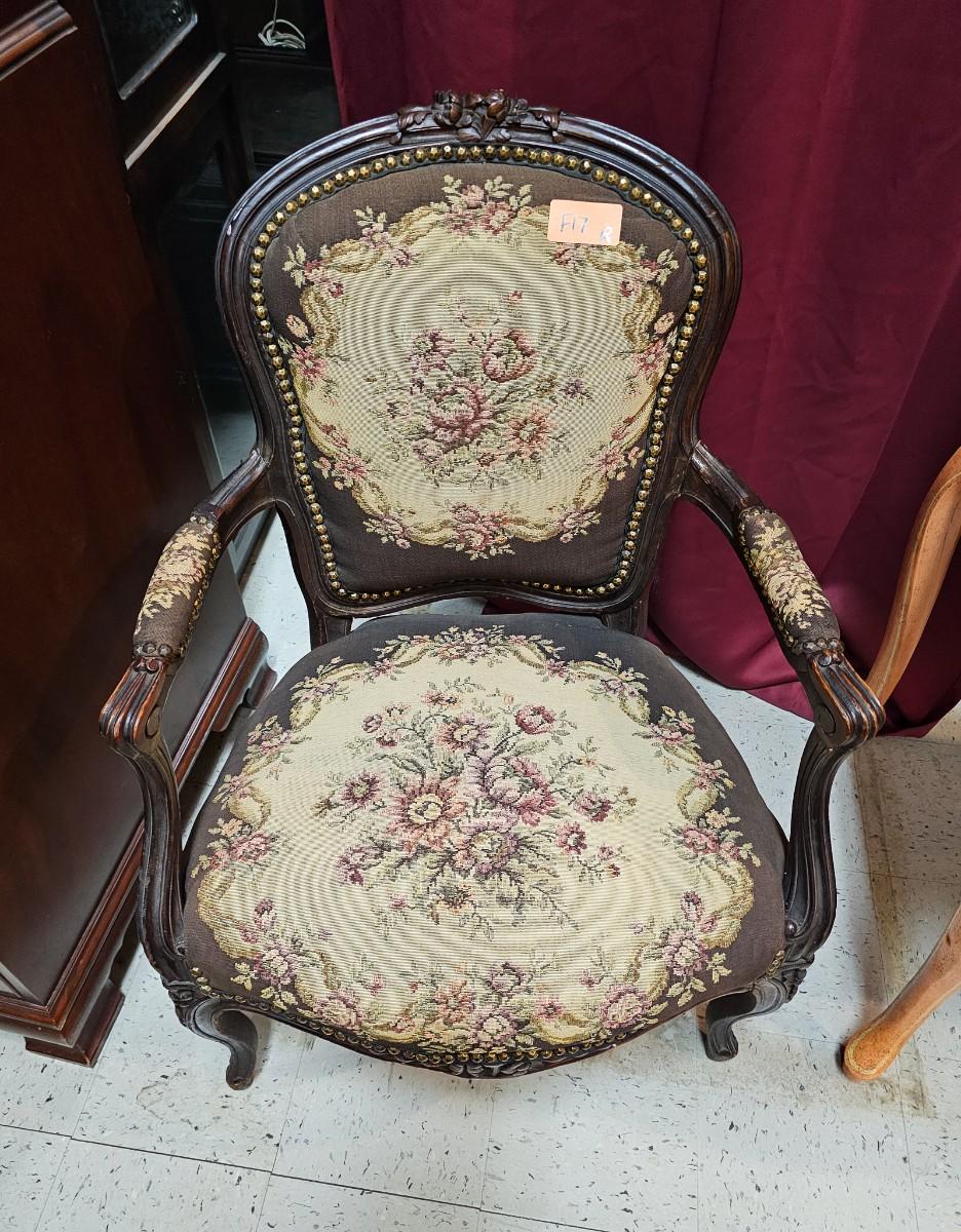 Antique Louis XV style needlepoint occasional chair with floral motif, c. 1920 24" W x 22" D x 33"H back, 16" H seat