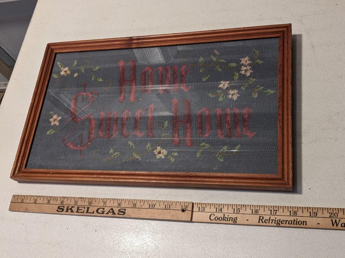 Antique Needlepoint Embroidered "Home Sweet Home"