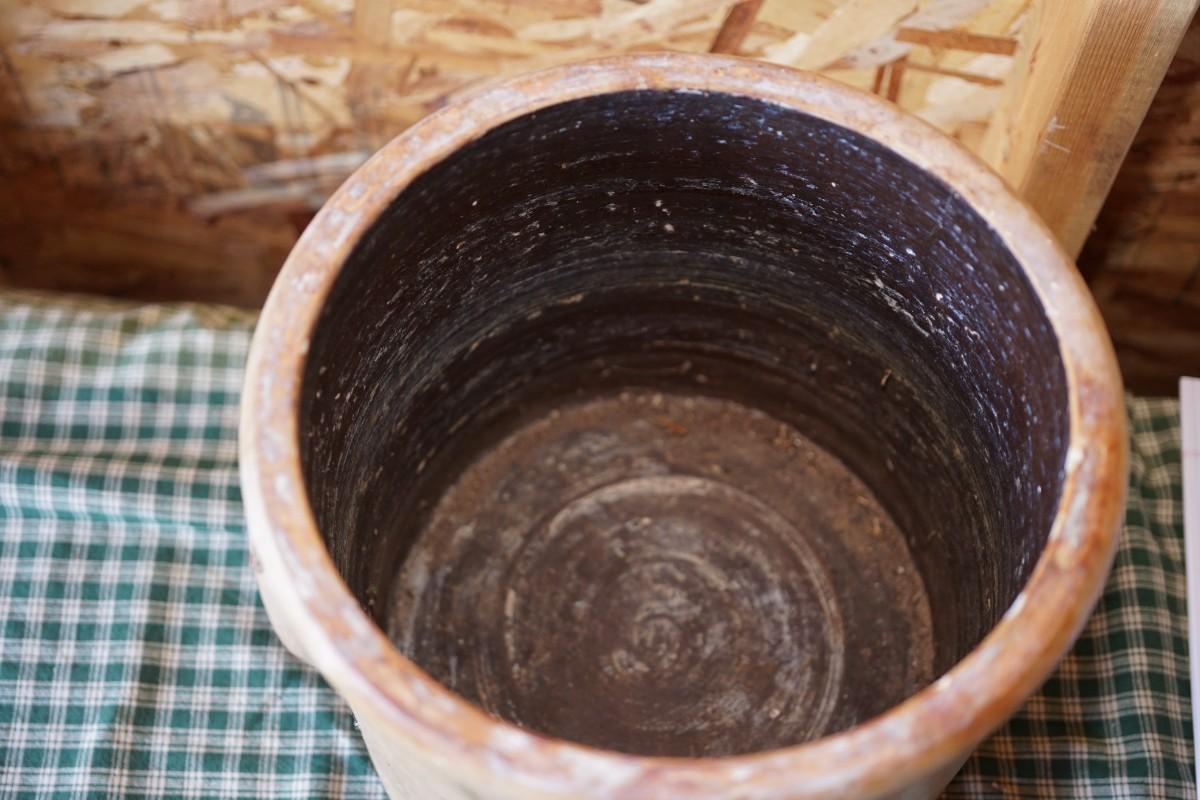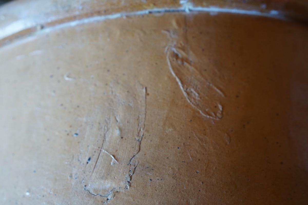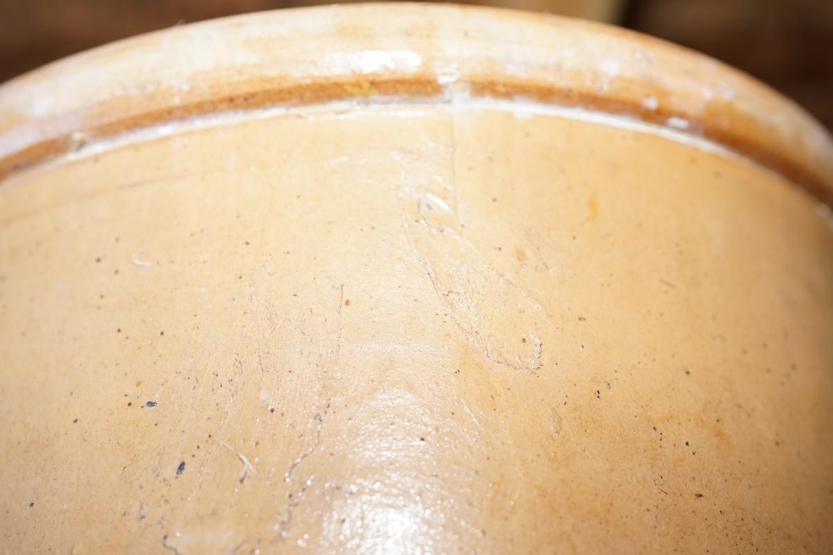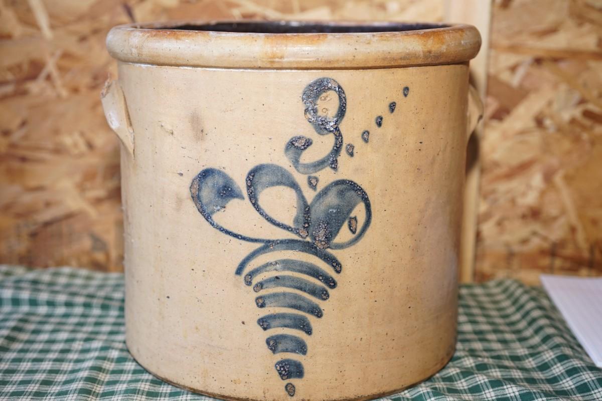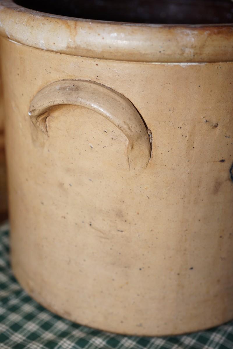small hairline crack near the top on the back of the crock. few nicks to the inside of the top rim.