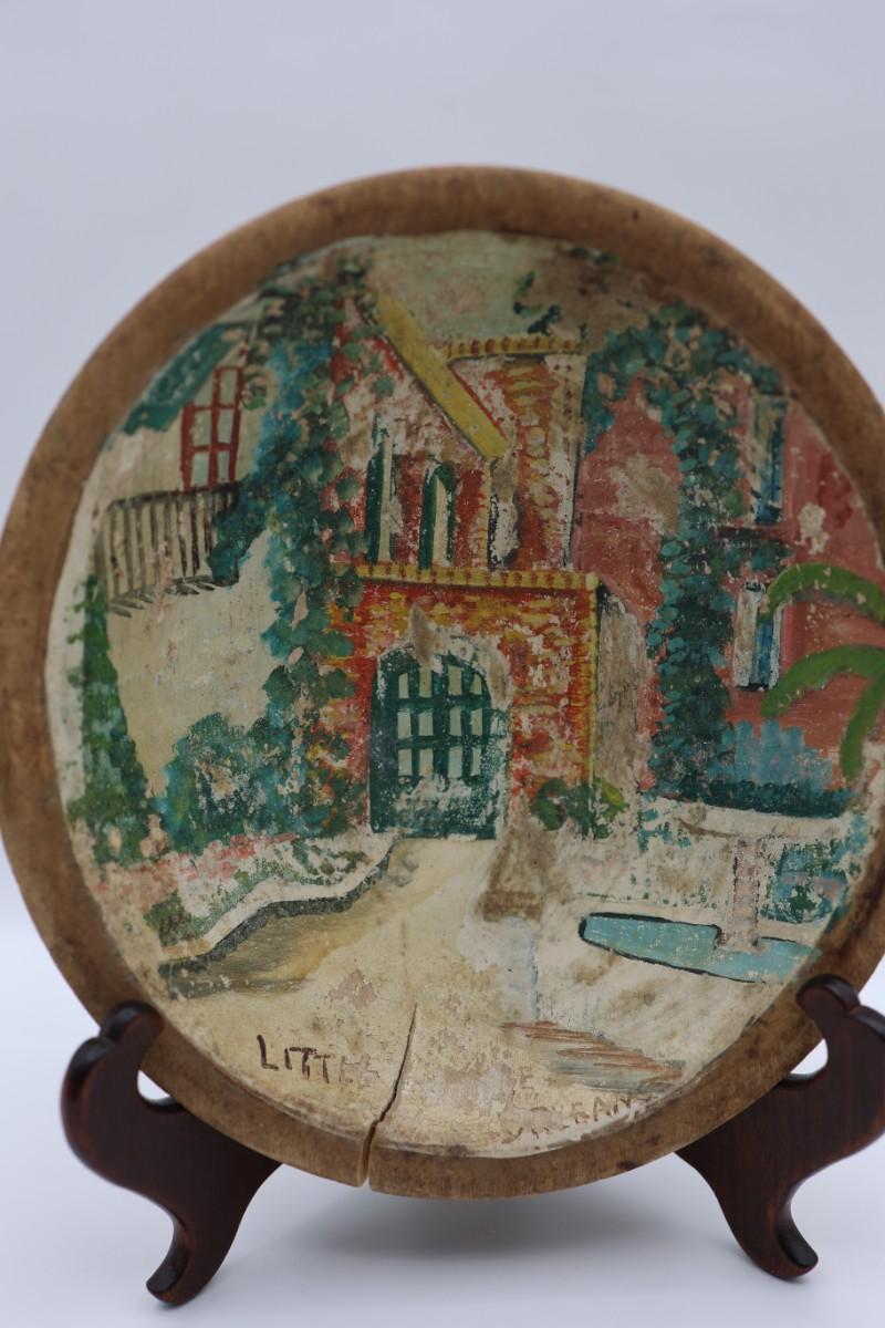 The writing of "New Orleans" looks to have worn away at the bottom center, along with the artists name on the bottom left. A beautiful vintage art piece of New Orleans.