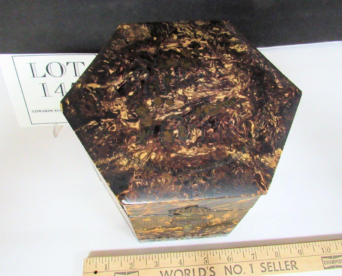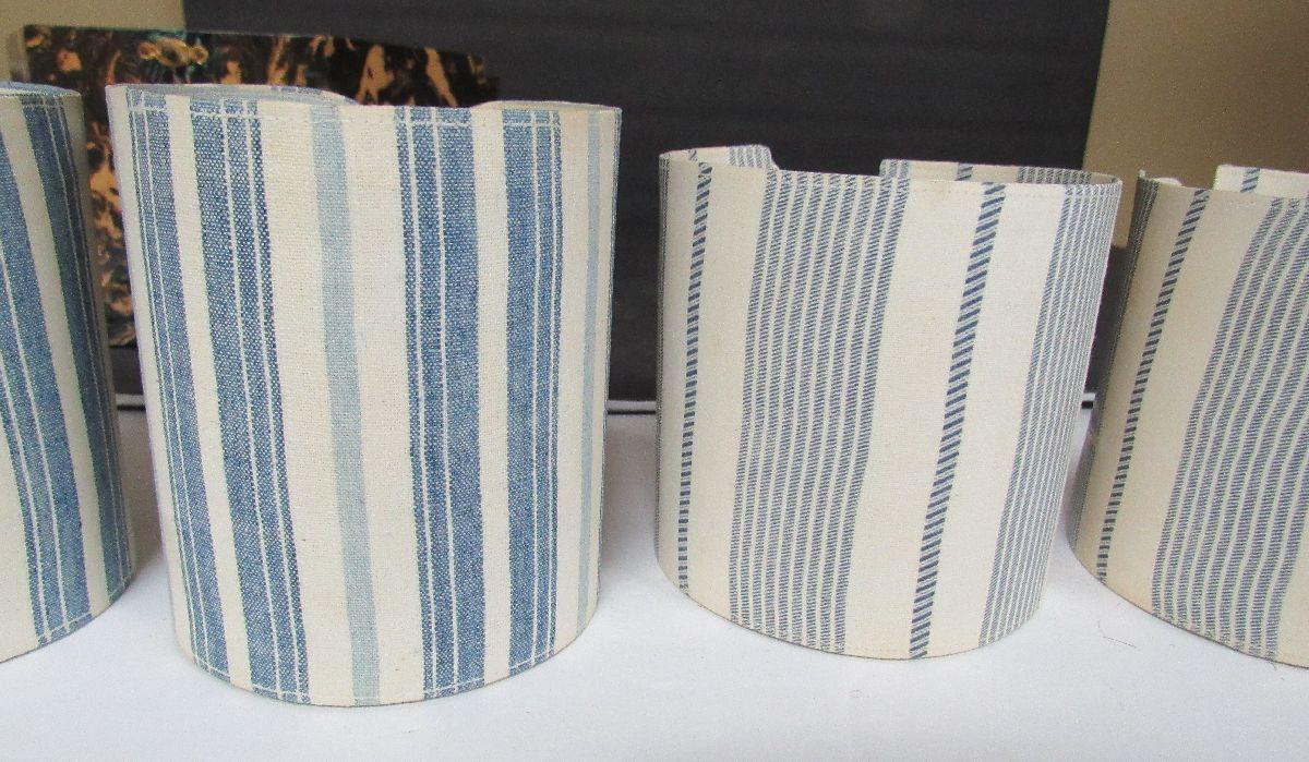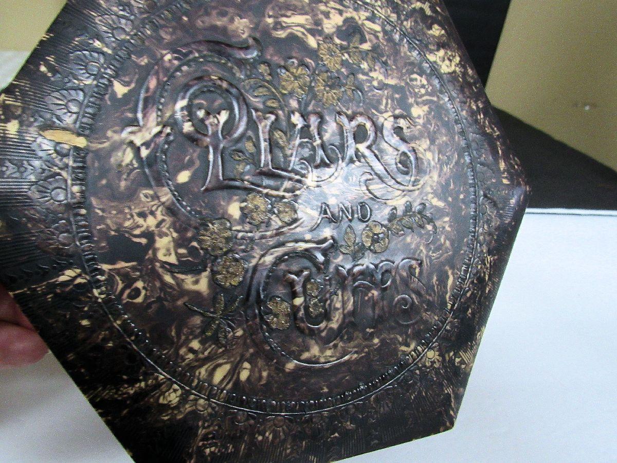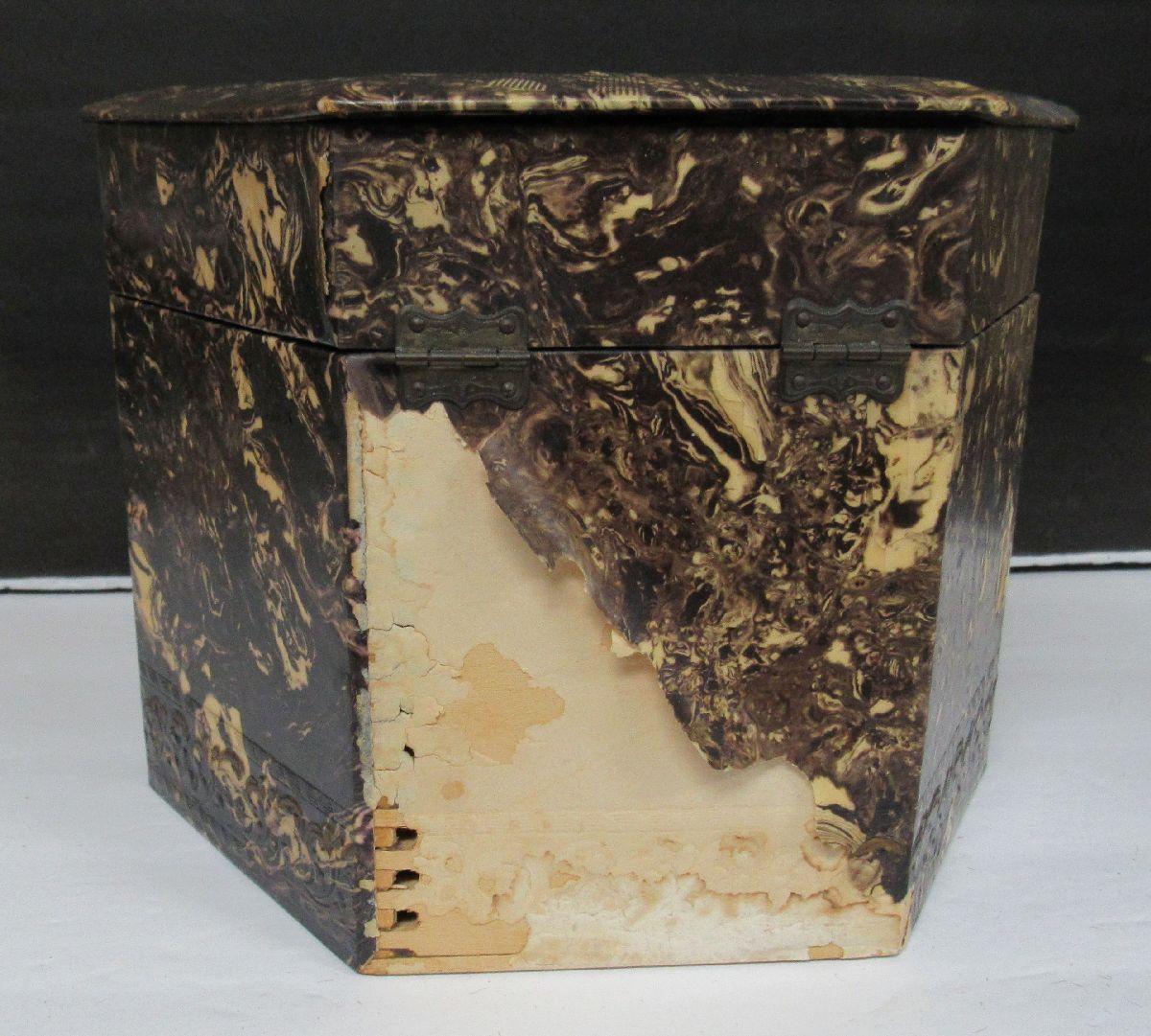 The box top is embossed cuffs and collars. Unfortunately the back of the box has damage, the outer layer is peeling off and you can see the wood underneath. Would make a beautiful display piece if the back is concealed. It includes 2 off white vintage stiffened collars, one has slight staining. Also 2 sets of stiffened blue/white striped cuffs. Also some buttons and clips are included. You don't often see these old sets around and are pricey when found with original box! Shipping is available at shipping cost plus $5.00 handling fee on one box, $10.00 handling fee on two boxes, $15.00 handling fee on 3 boxes. Helps cover shipping materials and labor cost.