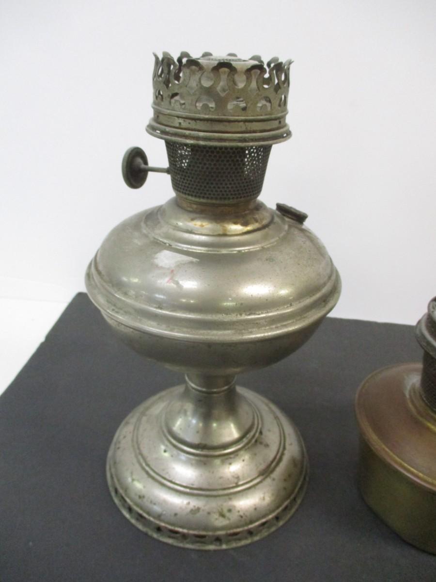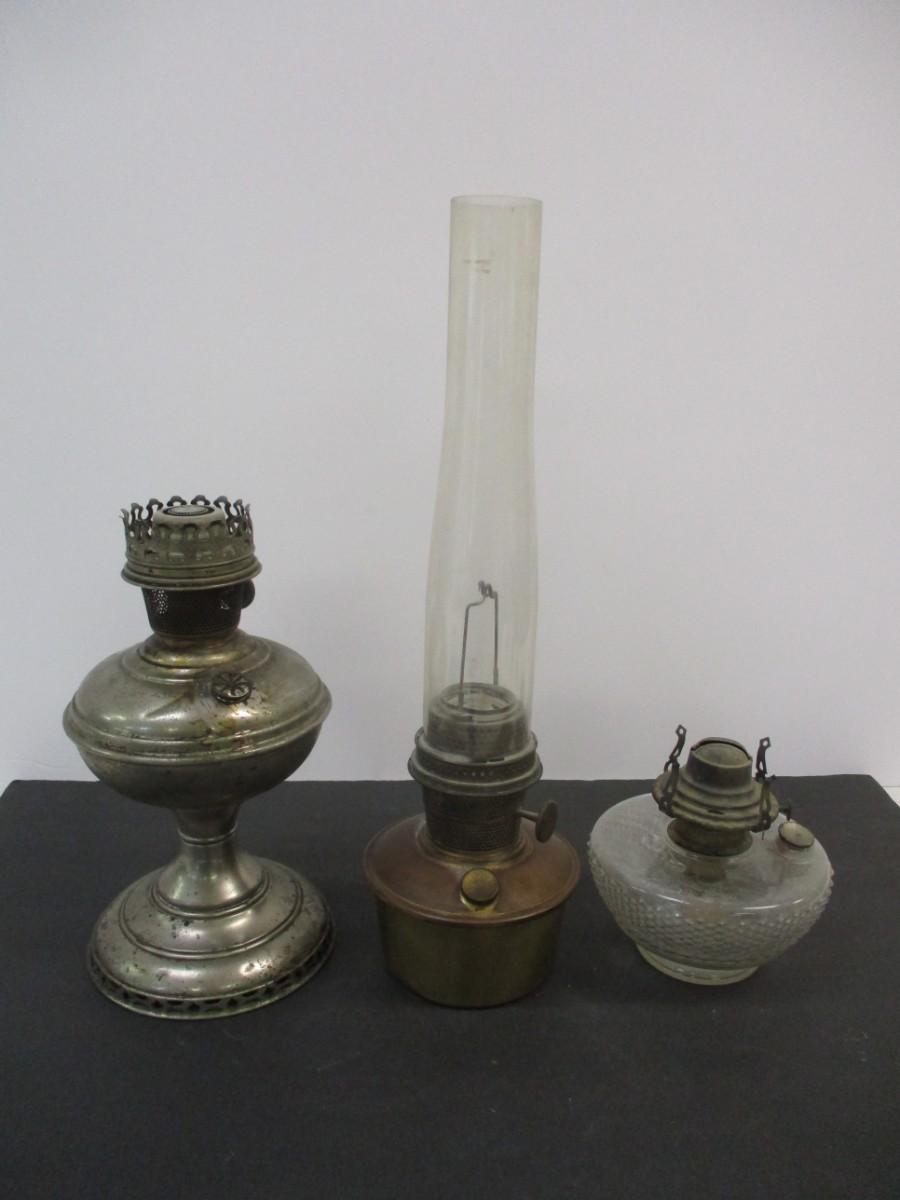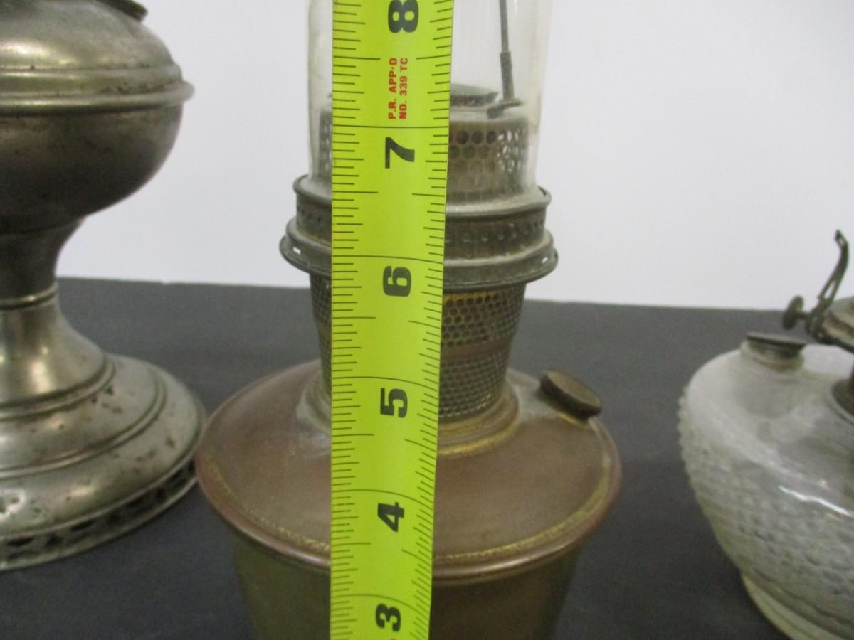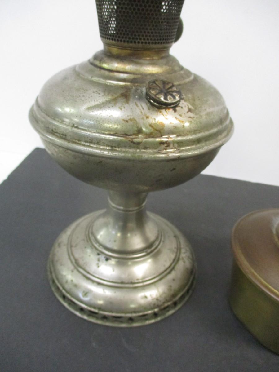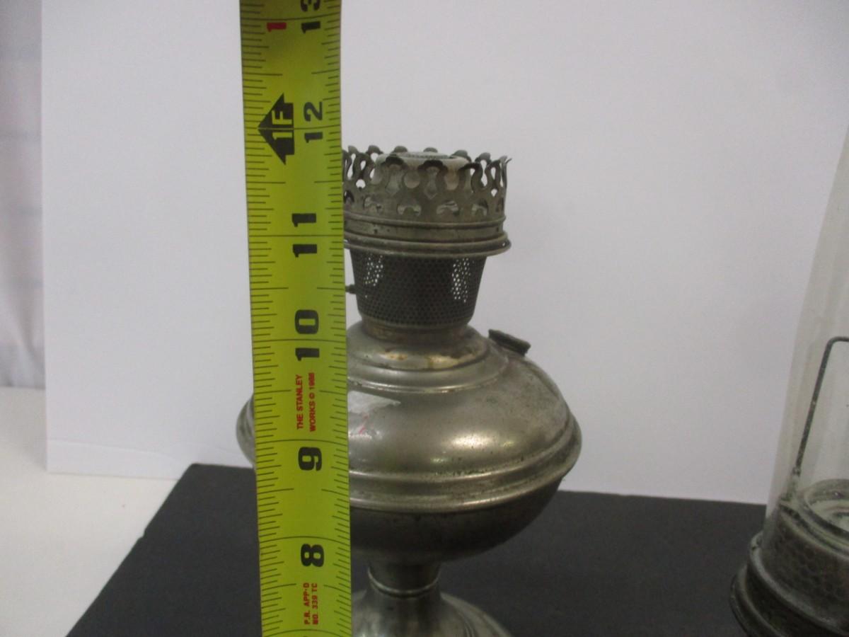 Antique Nickel Plated Aladdin Lamp - Aladdin Brass Lamp With Chimney -Diamond Design Glass Lamp Base #15