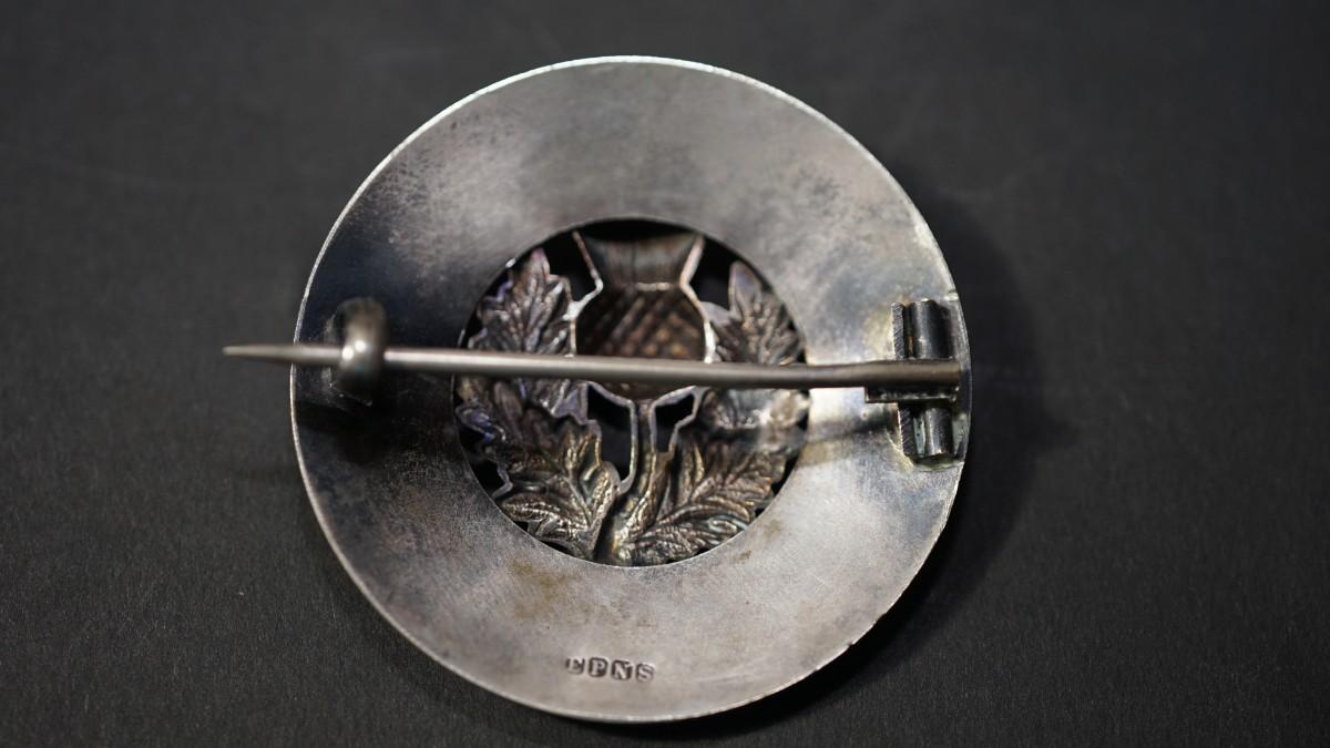 ANTIQUE NICKEL SILVER BROOCH SCOTTISH STYLE /THISTLE ENGRAVED