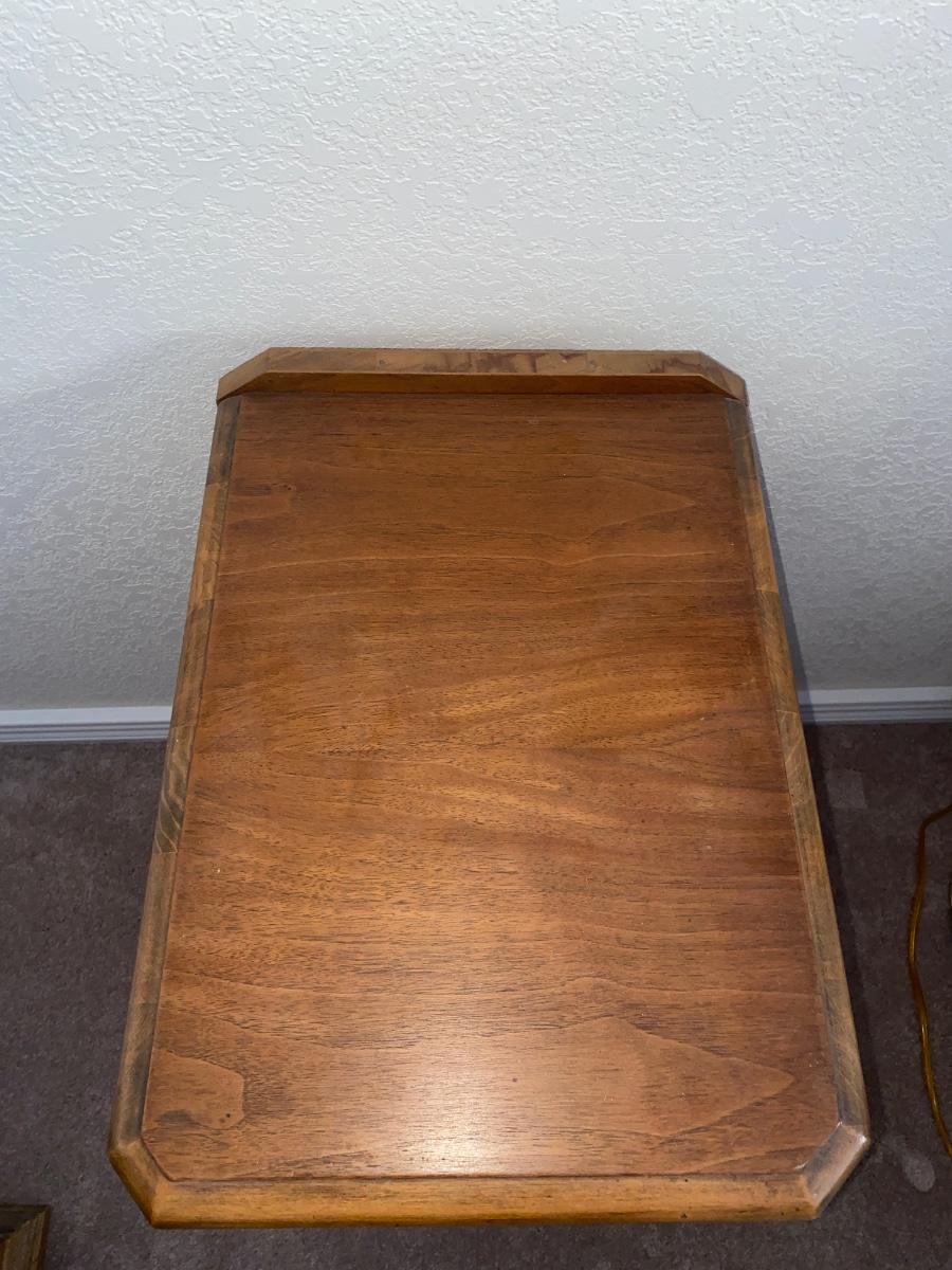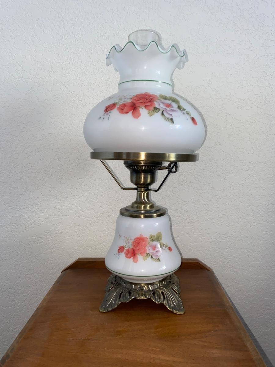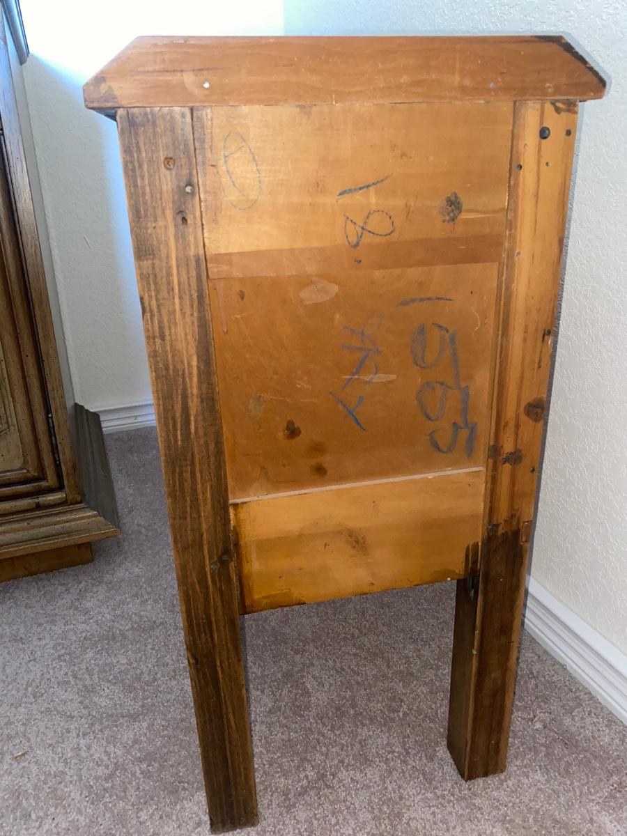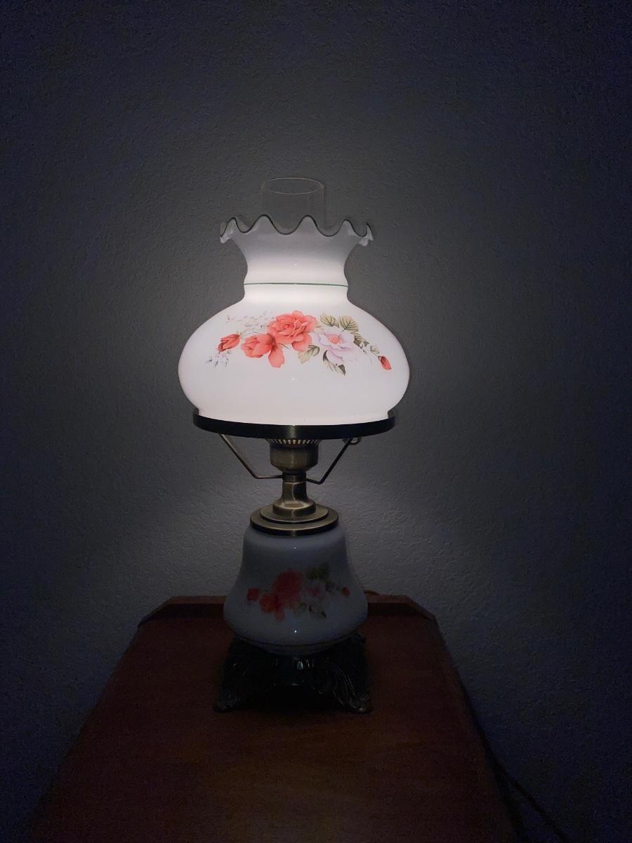 ANTIQUE 2 DRAWER NIGHT STAND AND GLASS GLOBE LAMP (1of2)