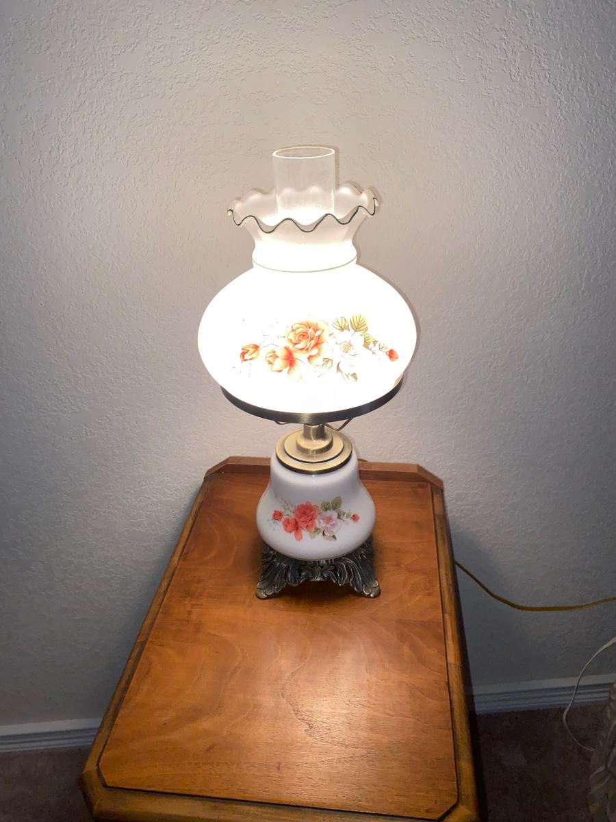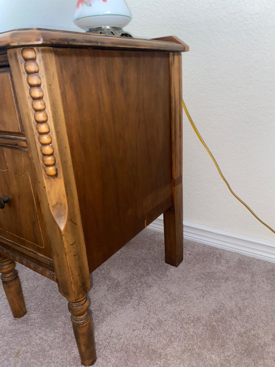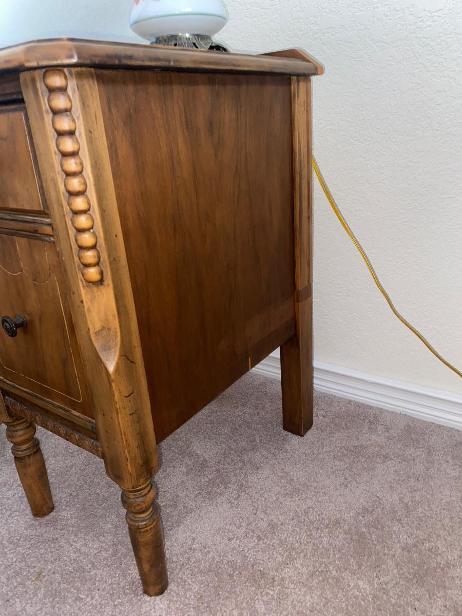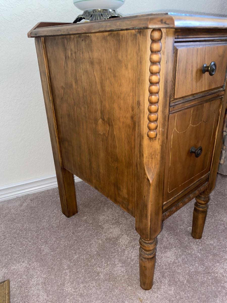 ANTIQUE 2 DRAWER NIGHT STAND AND GLASS GLOBE LAMP (2of2)