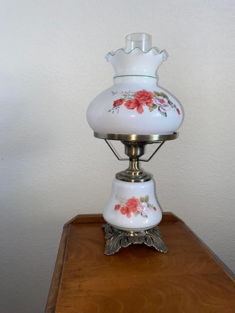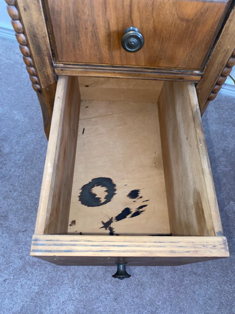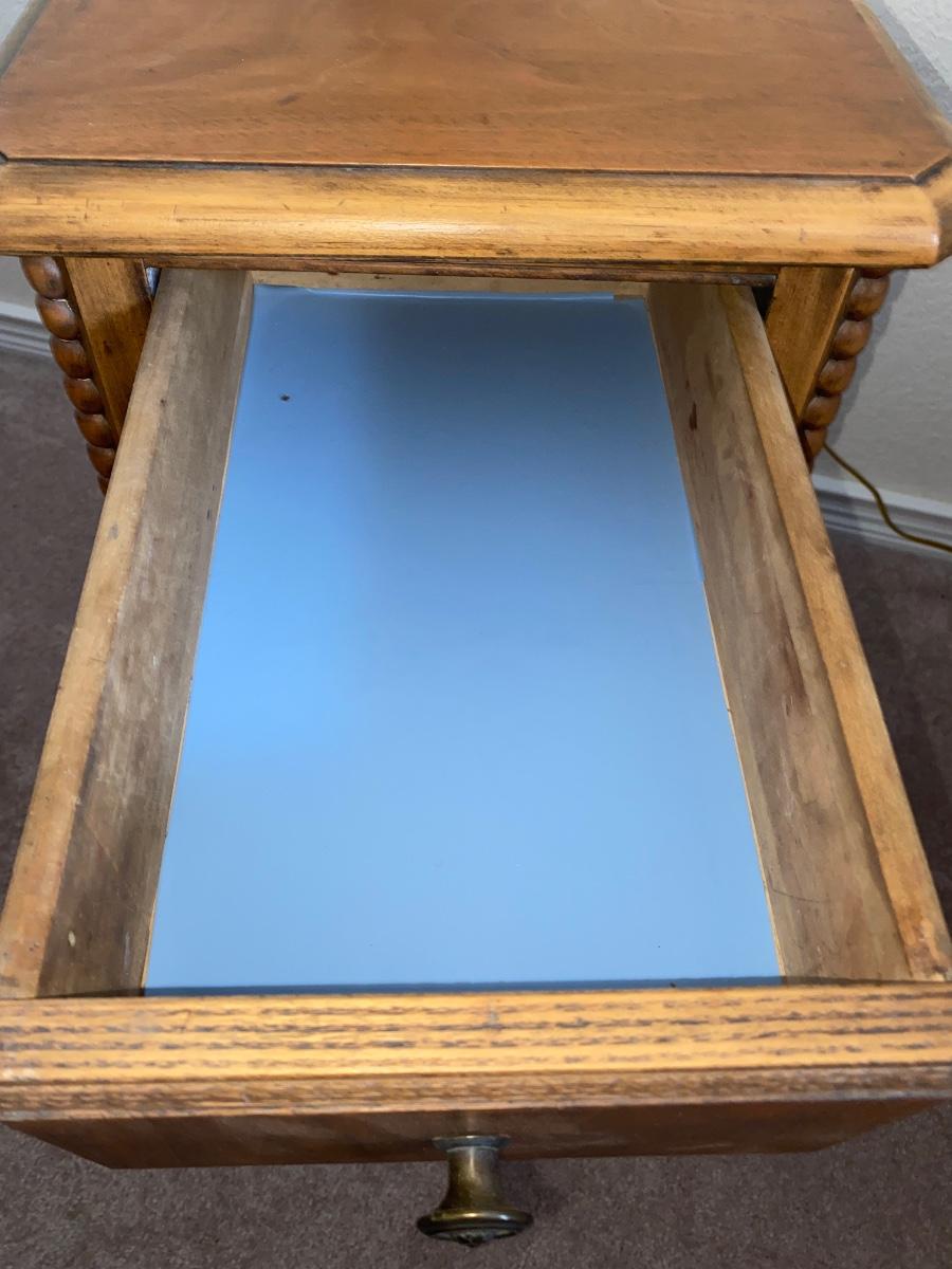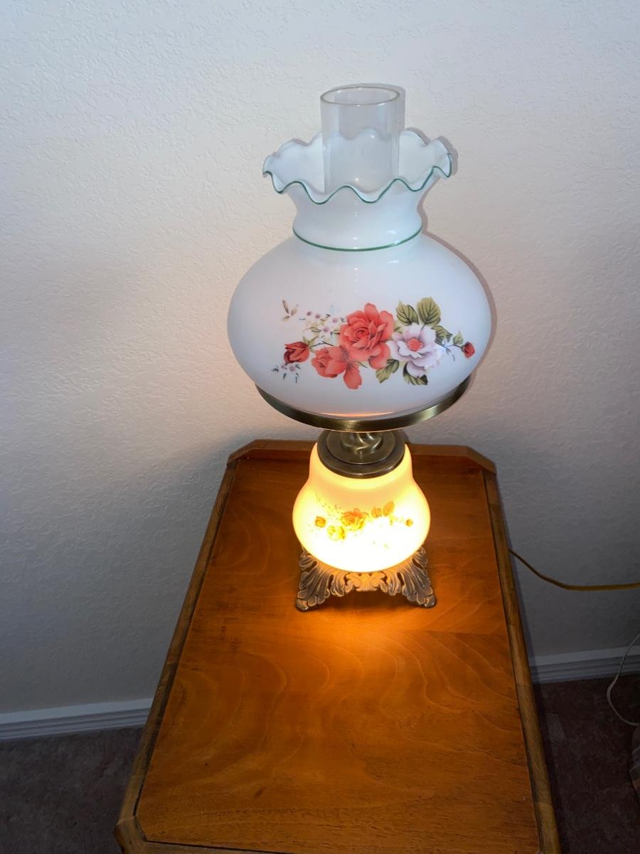 ANTIQUE 2 DRAWER NIGHT STAND AND GLASS GLOBE LAMP (2of2)