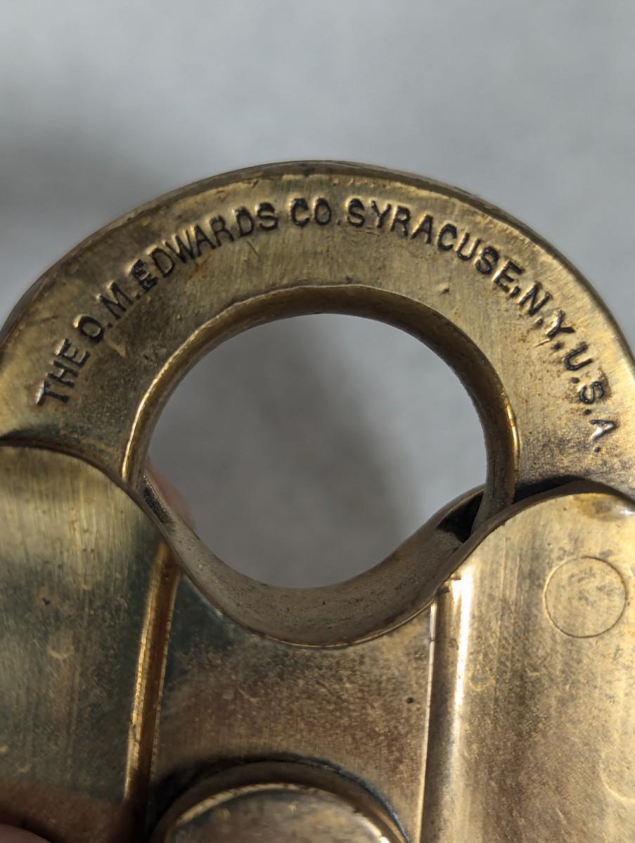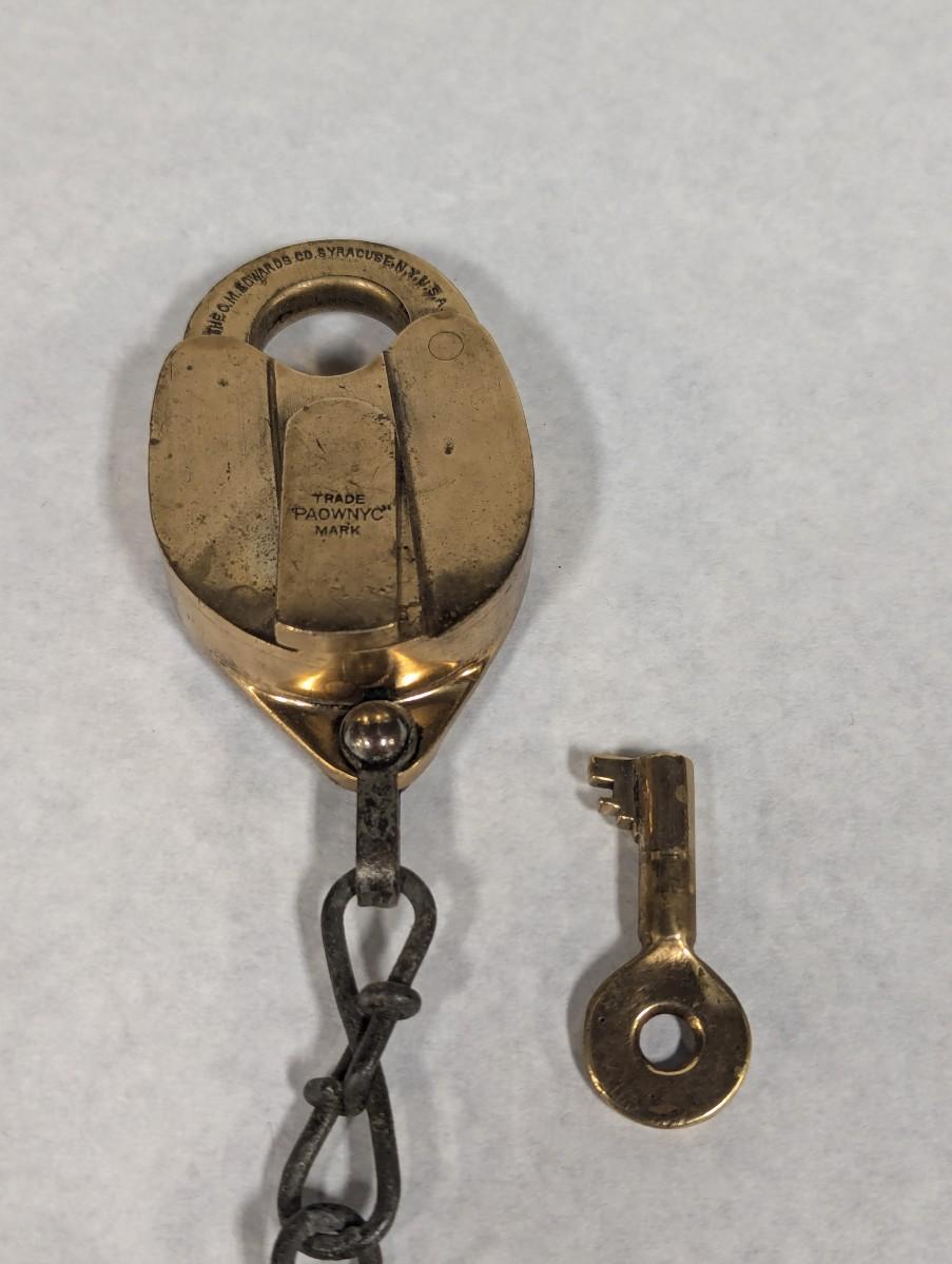Antique O. M. Edwards Co. Syracuse NY "PAOWNYC" Brass Railroad Lock With Key