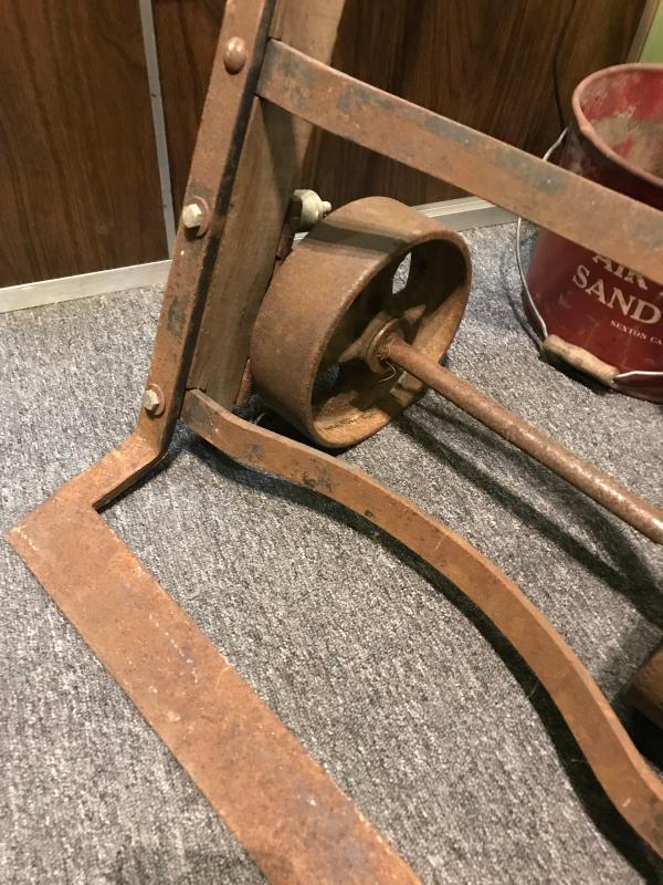 Lot 86-Antique Oak and Iron Barrel Dolly