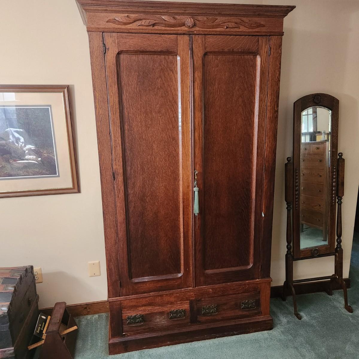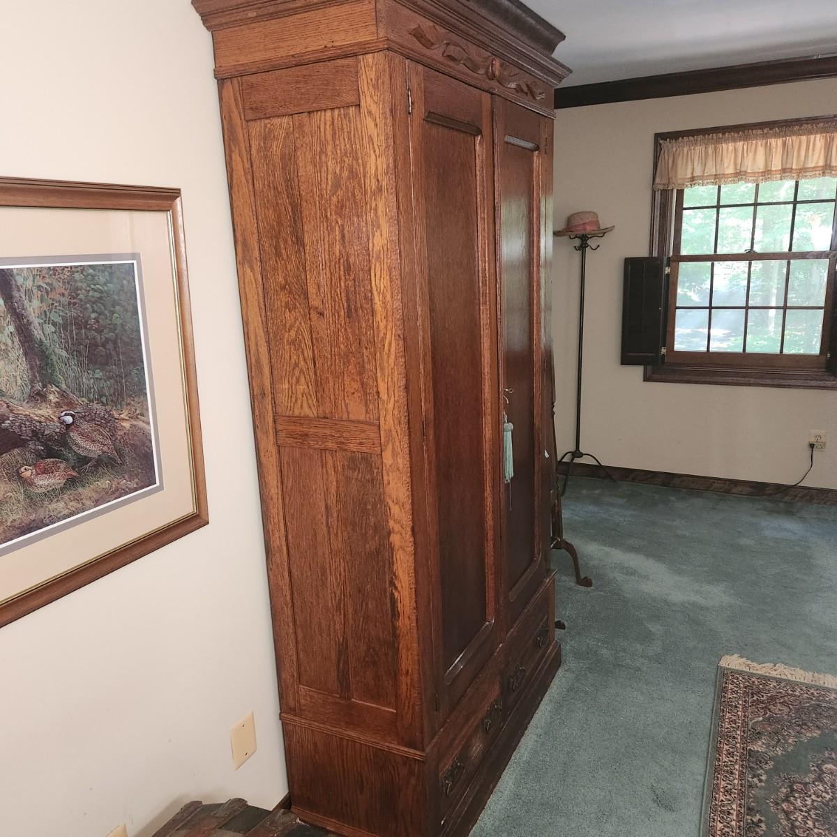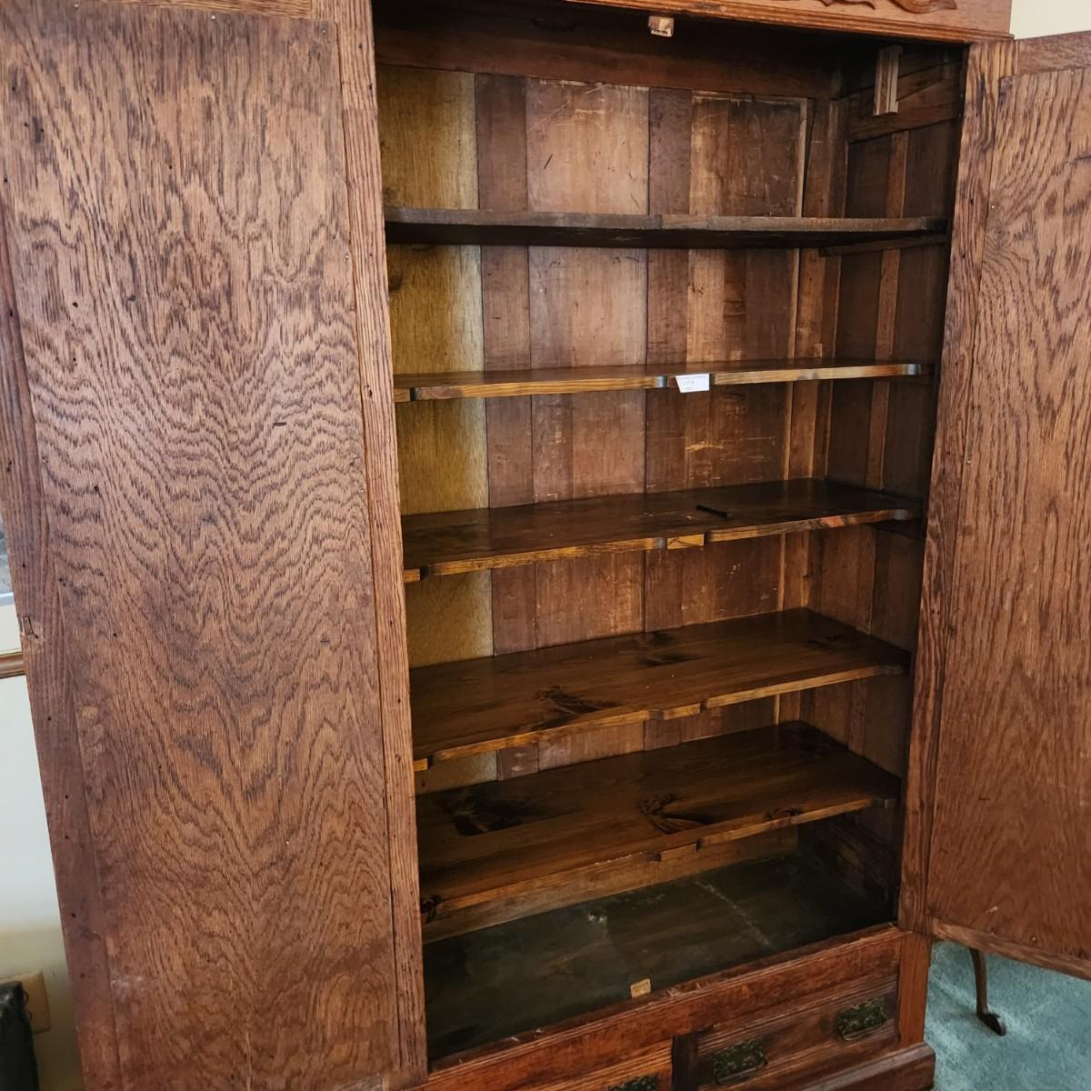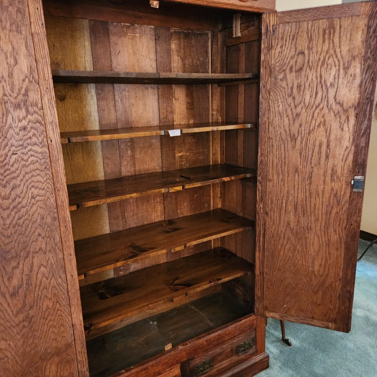 Antique Oak Armoire 5 Shelves 44x18x84
