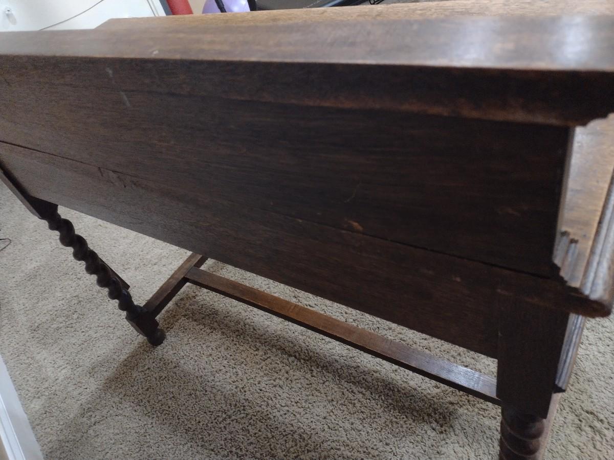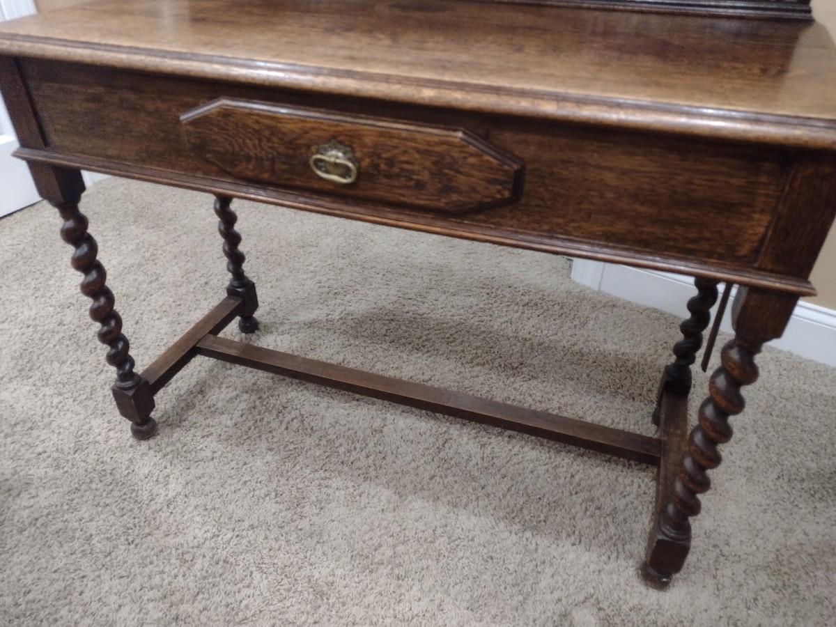 Antique Oak Barley Twist Hall Table or Console. Upstairs item. Please bring assistance to remove item safely from the sale site.