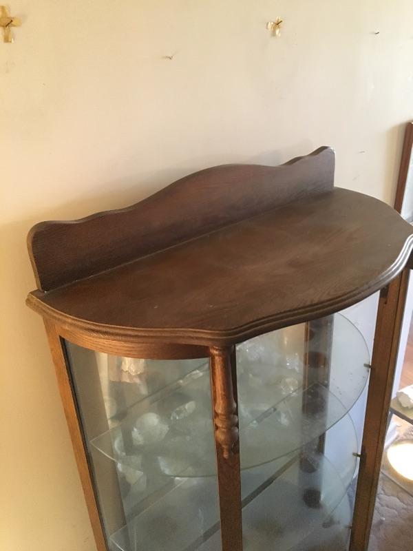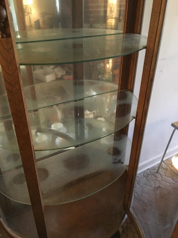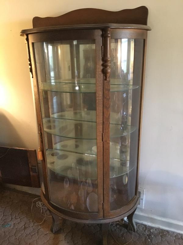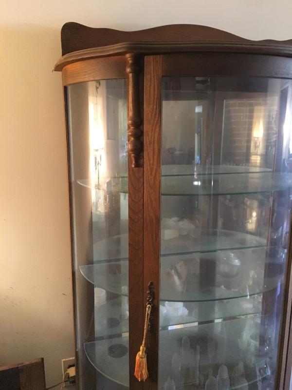 Antique Oak Bow Front Curio Display Cabinet 32 x 14 x 63”h