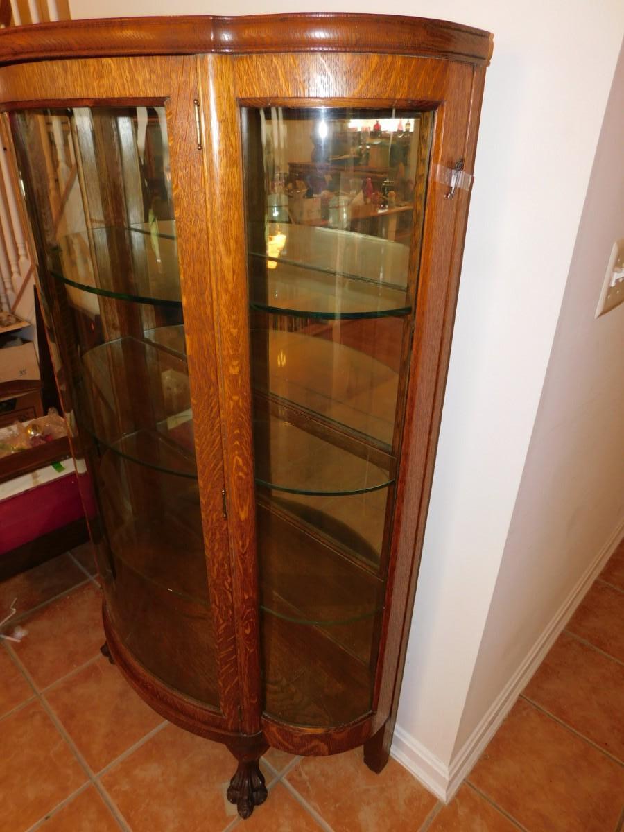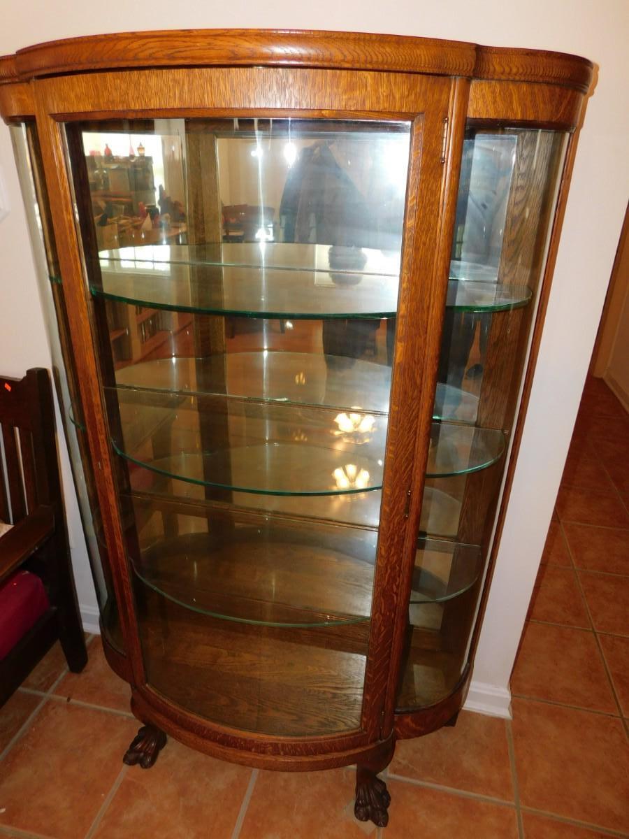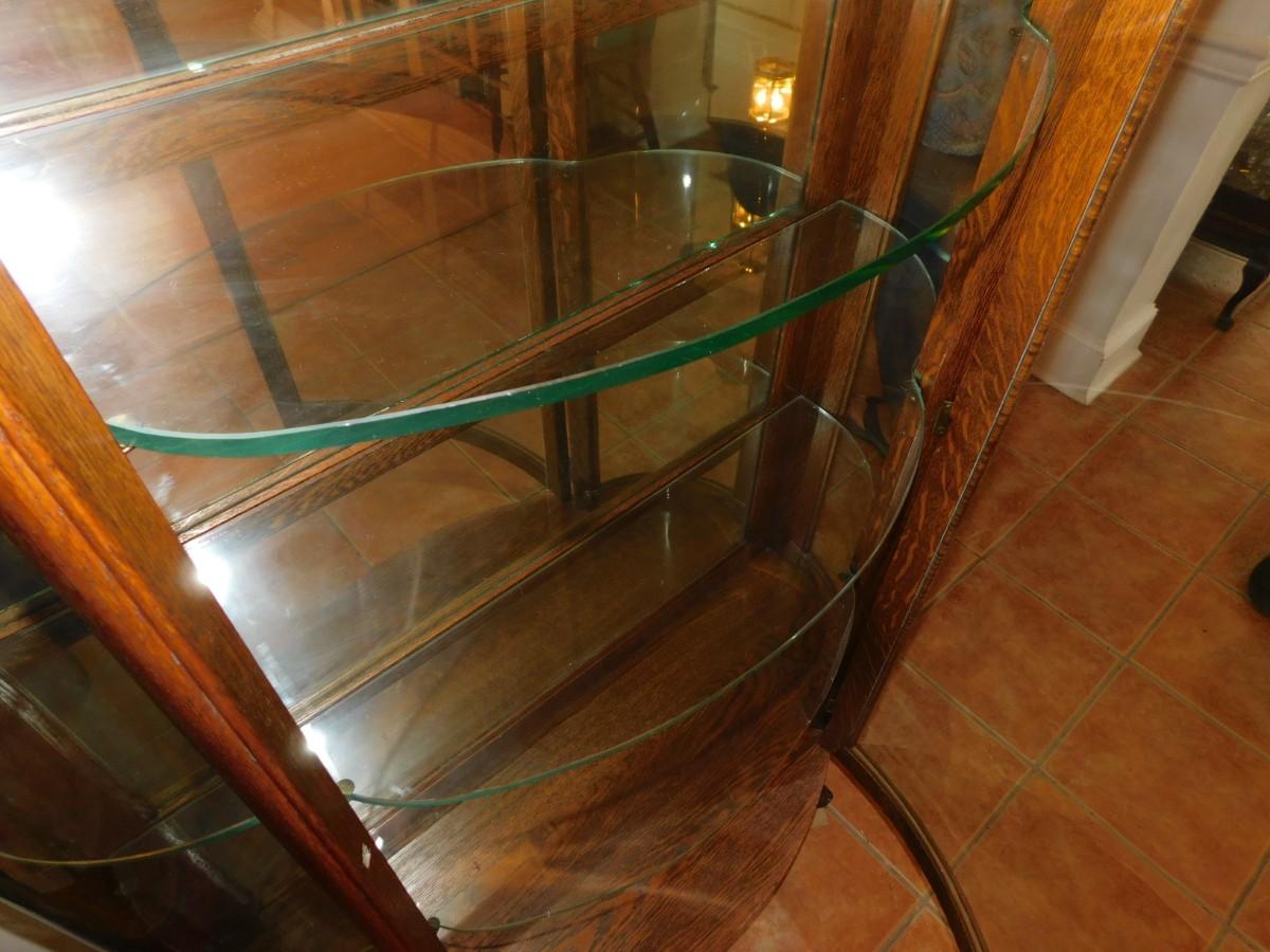 Antique Oak Bow Front Display China Cabinet CLEAN w/ Key