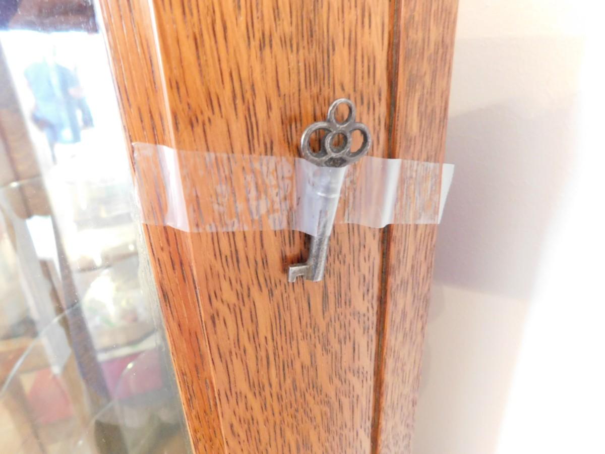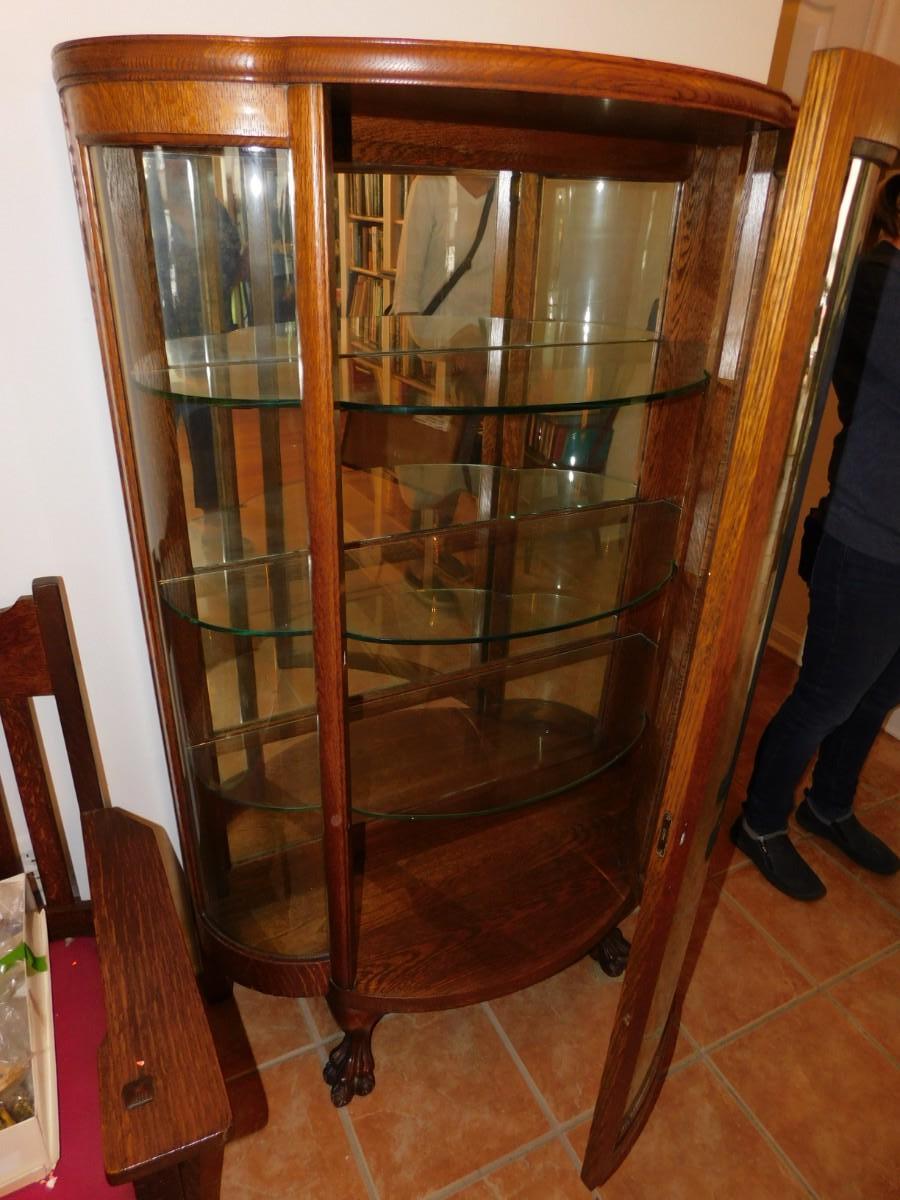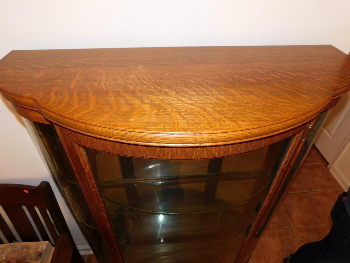 Antique Oak Bow Front Display China Cabinet CLEAN w/ Key
