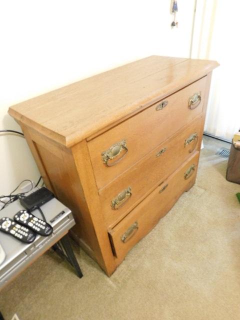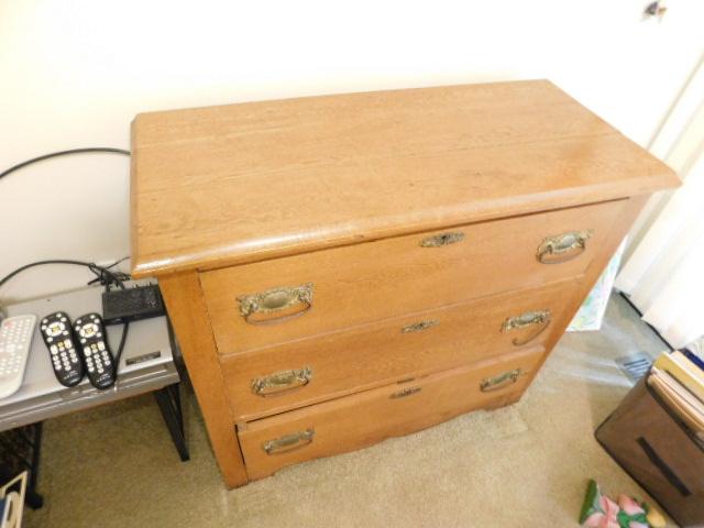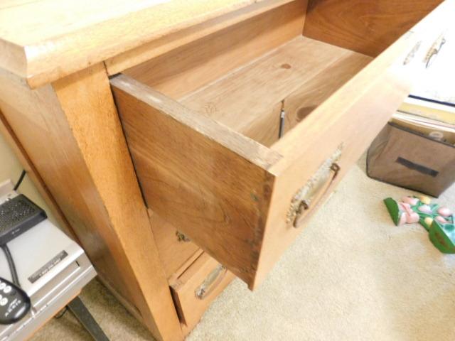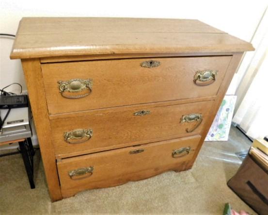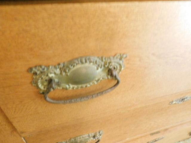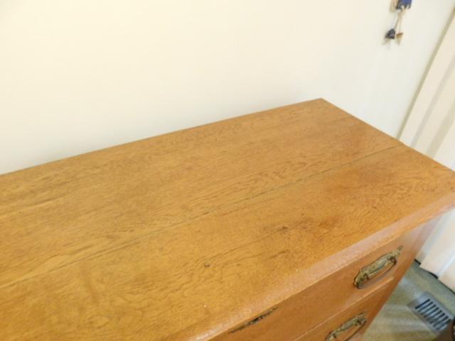 Antique Oak Chest of Drawers may have some wear. One handle is loose