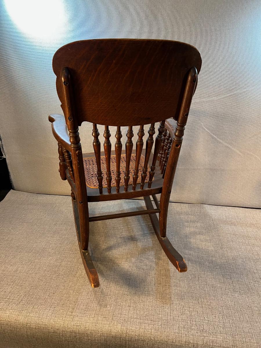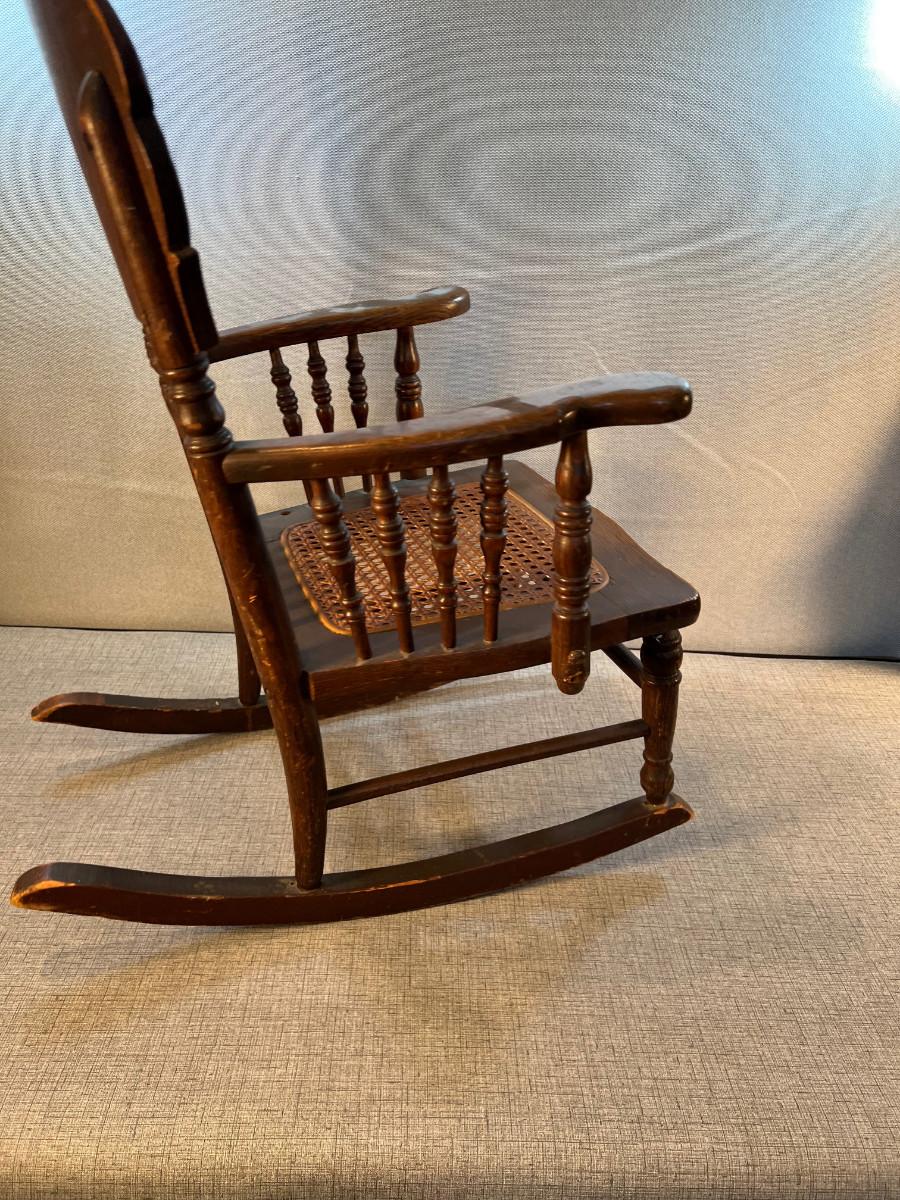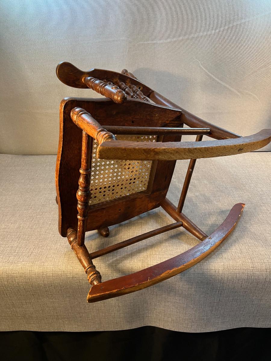 Antique Oak Childs Ratan Seated Rocking Chair