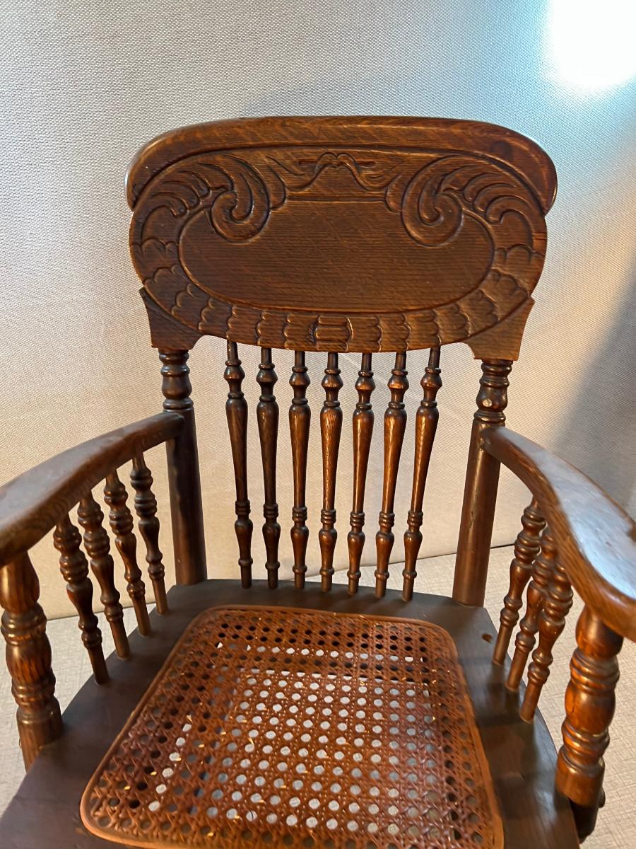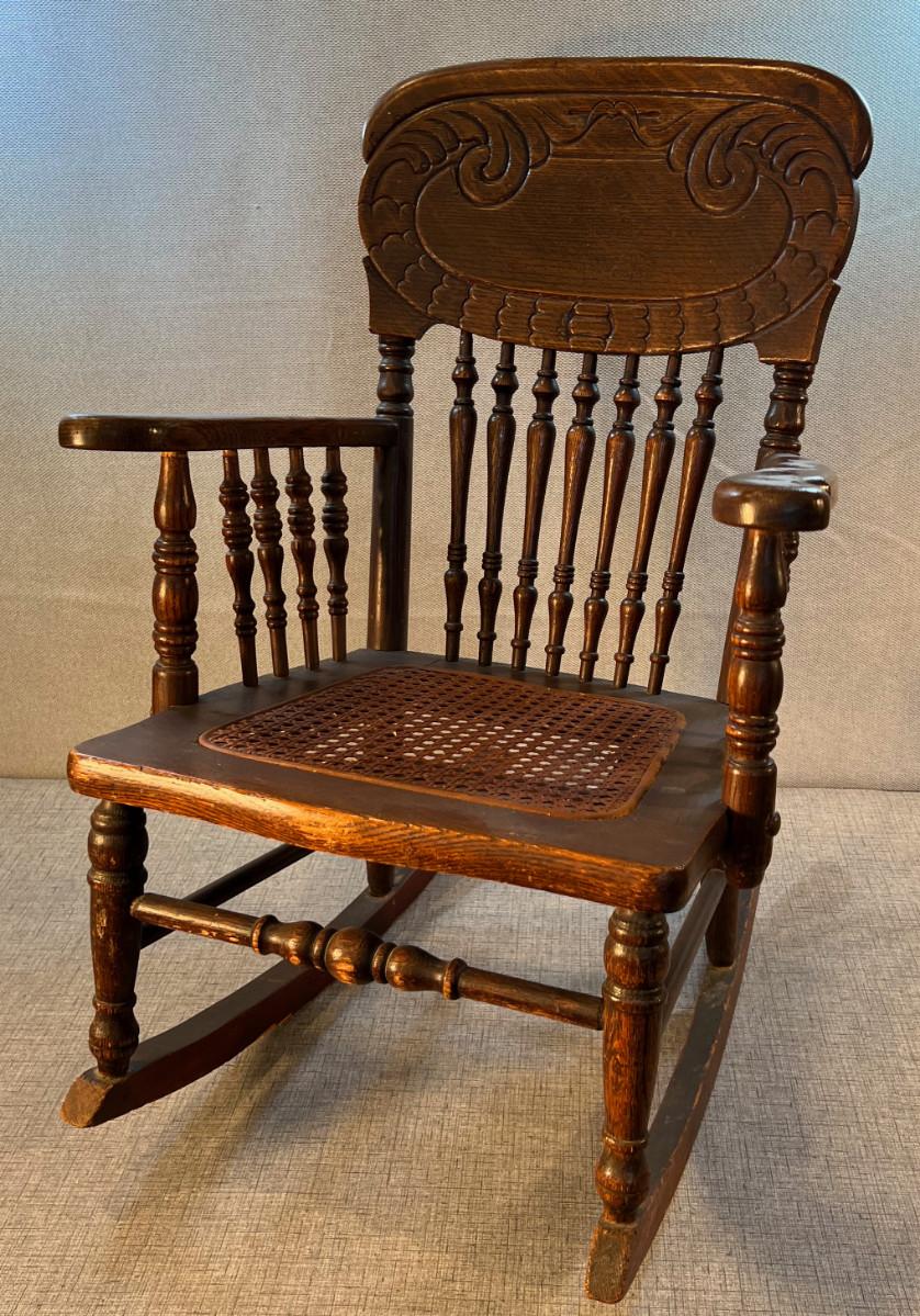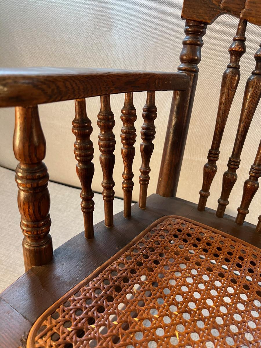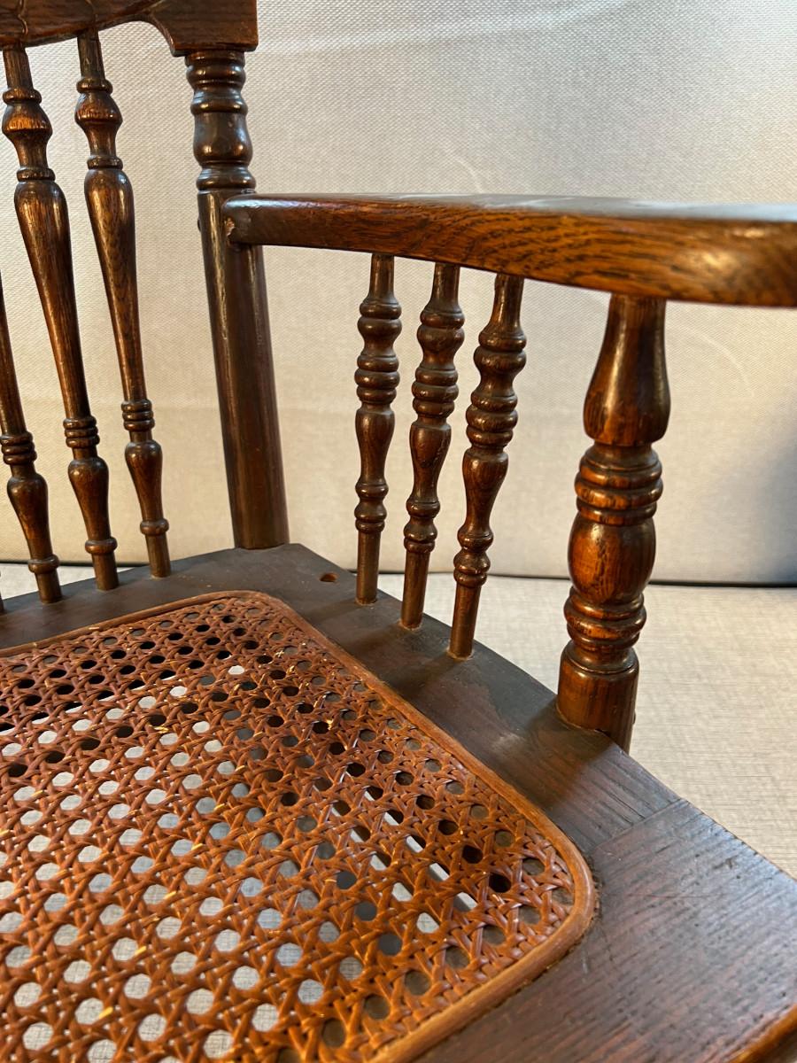 Antique Oak Childs Ratan Seated Rocking Chair