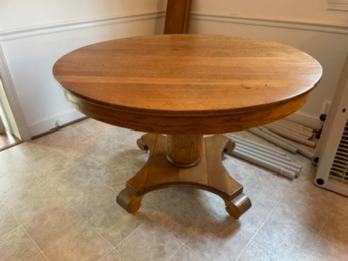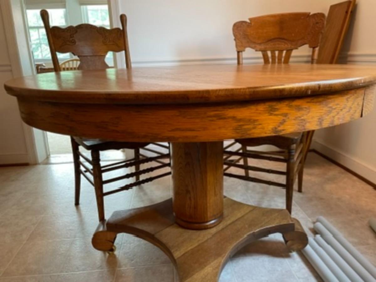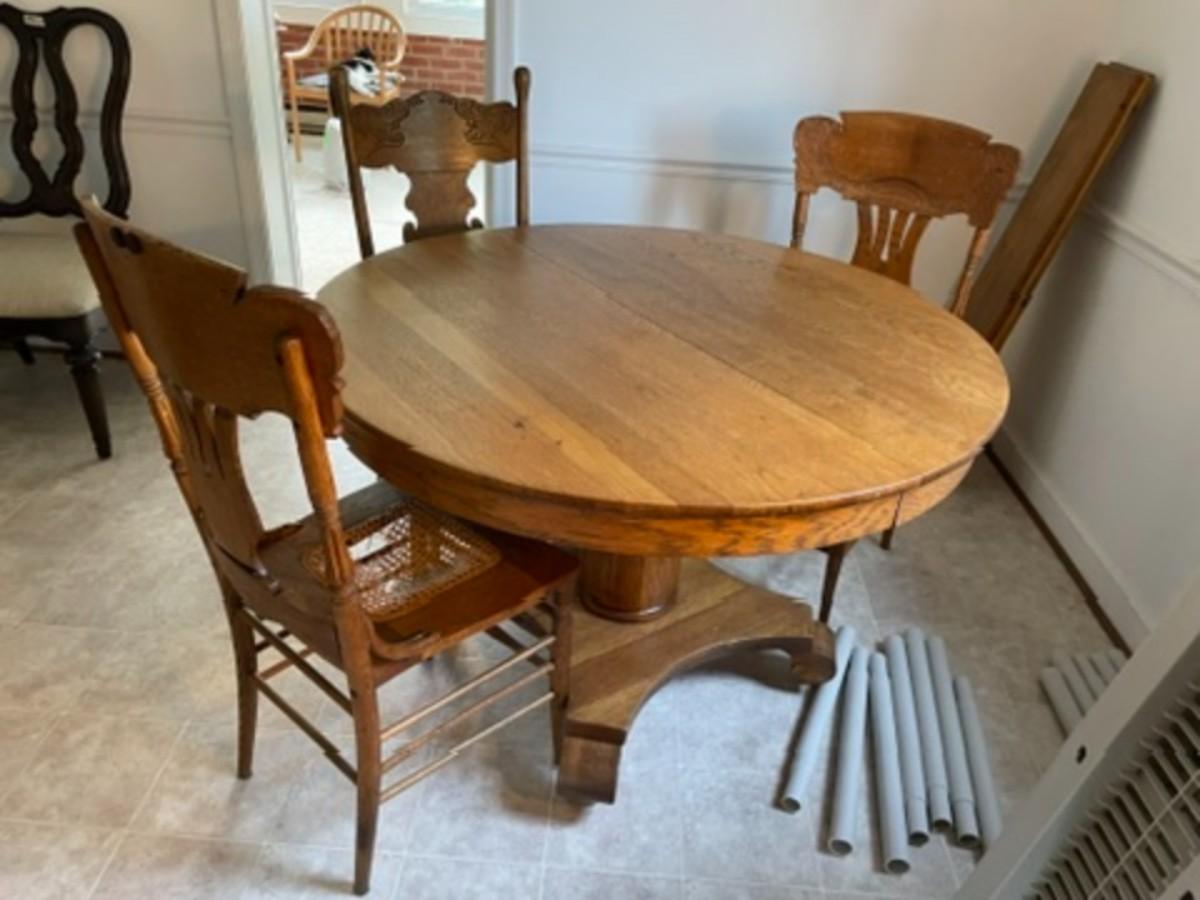 Antique Oak Dinning Table and 2 Chairs. Included 3 leaves