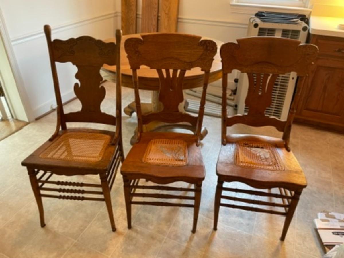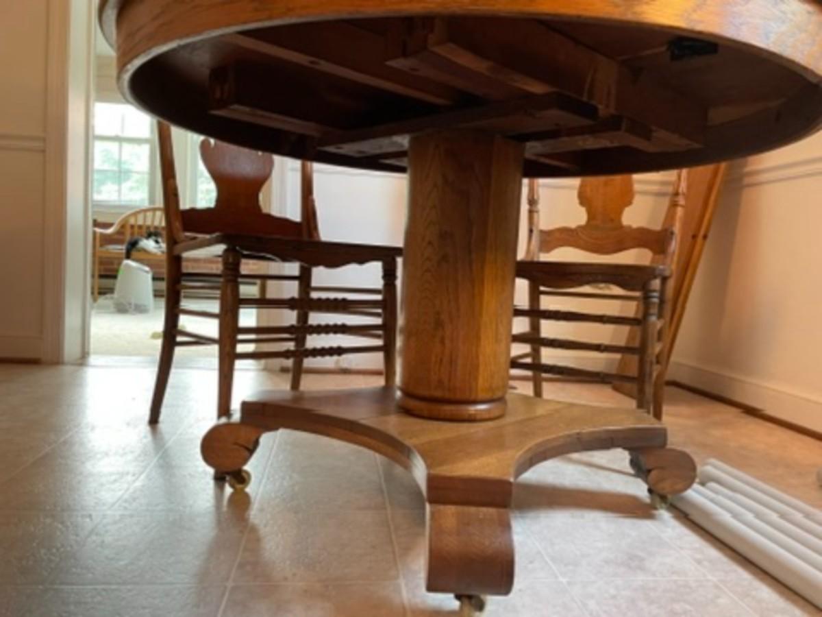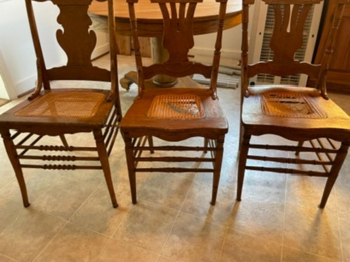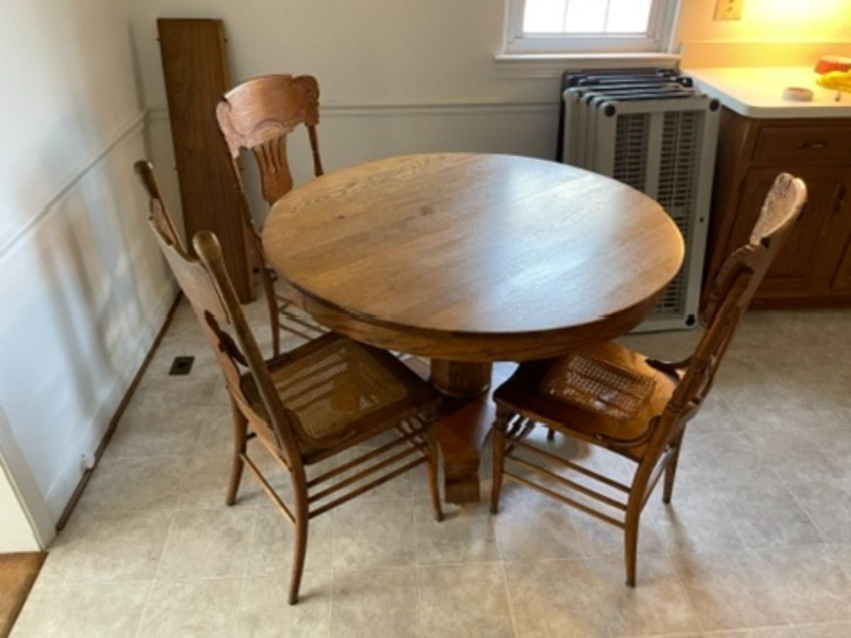 Antique Oak Dinning Table and 2 Chairs. Included 3 leaves