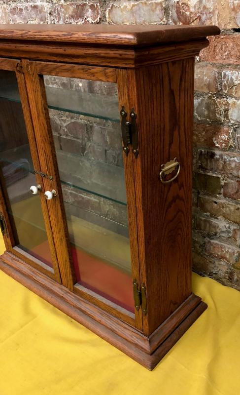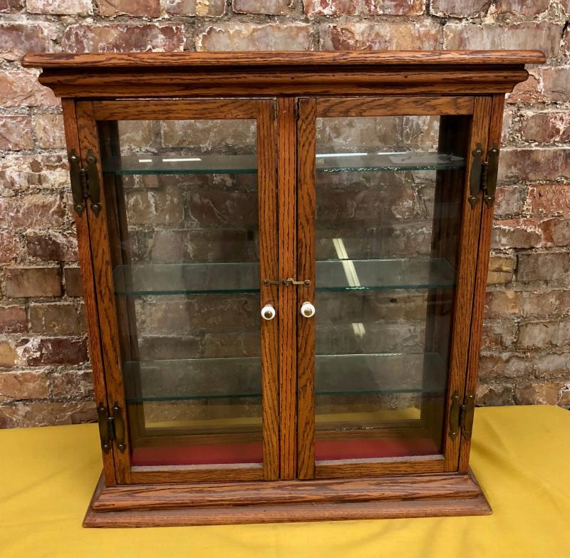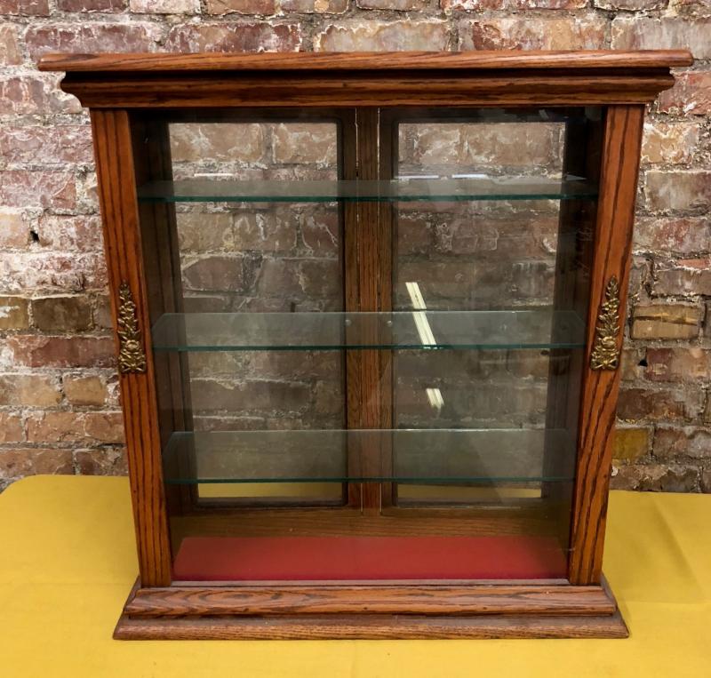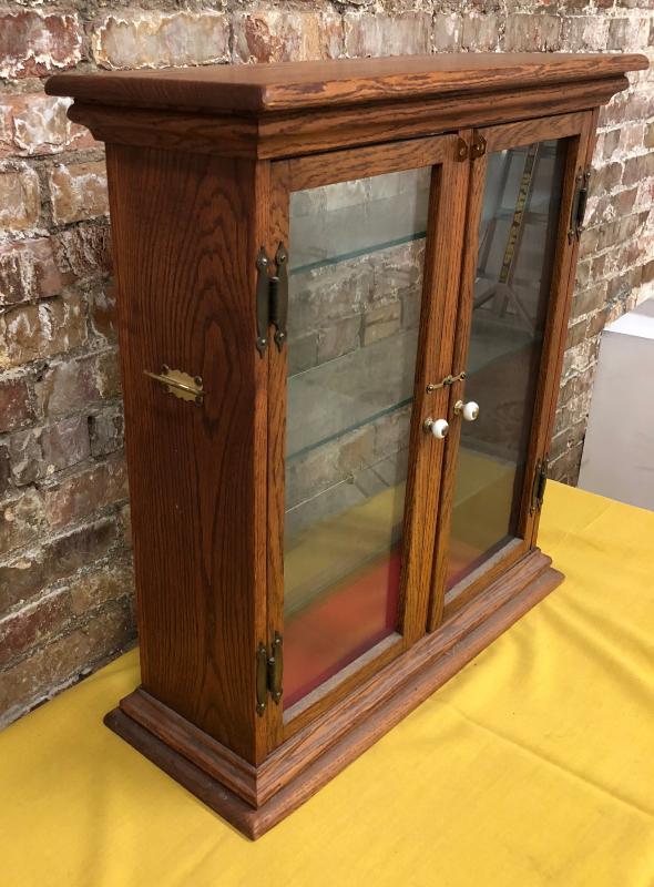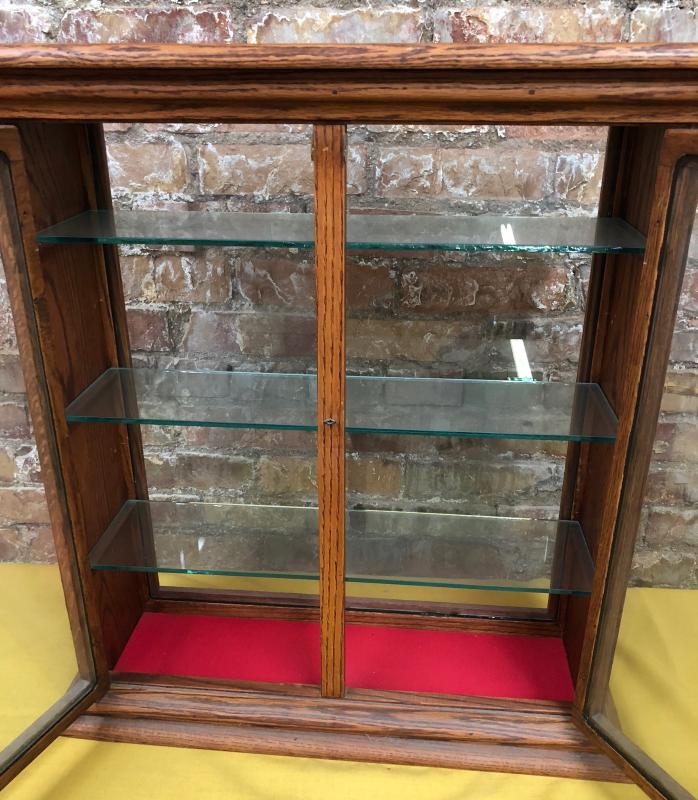 Antique oak display cabinet with glass shelves and front and back panels...Good condition..24 x 9 x 26"...