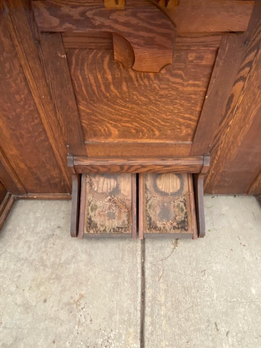Antique Oak Foot Pump Organ Estey Organ Co. Needs some work, missing some trim pieces. Untested. TO BE PICKED UP IN LA HABRA HEIGHTS. WE WILL SCHEDULE PICK UP AFTER JULY 4TH.