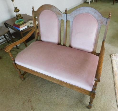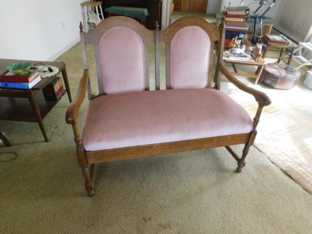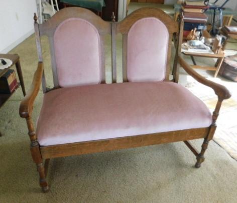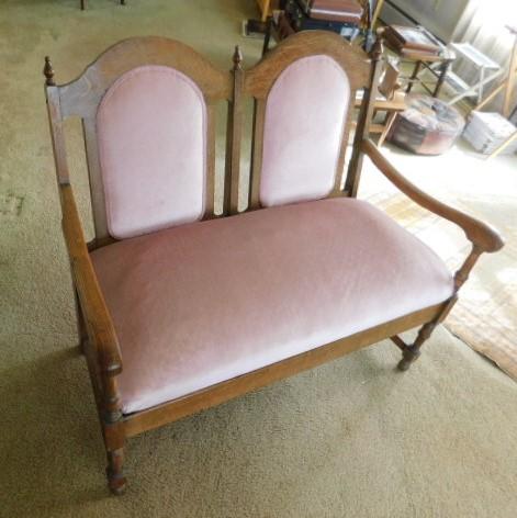 Antique Oak Frame Double Back Upholstered Bench 43"x23"x38"