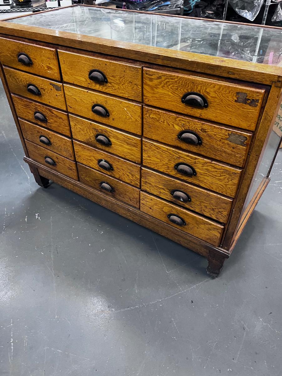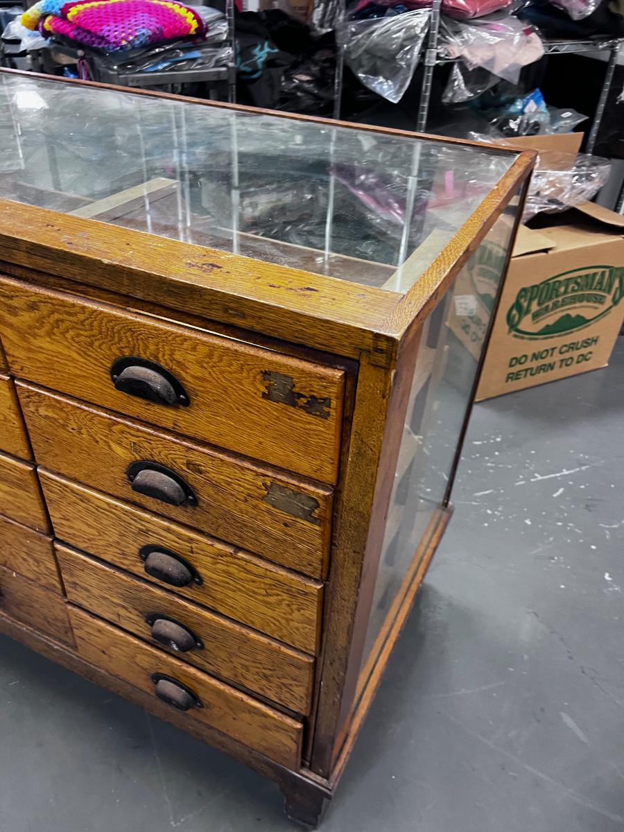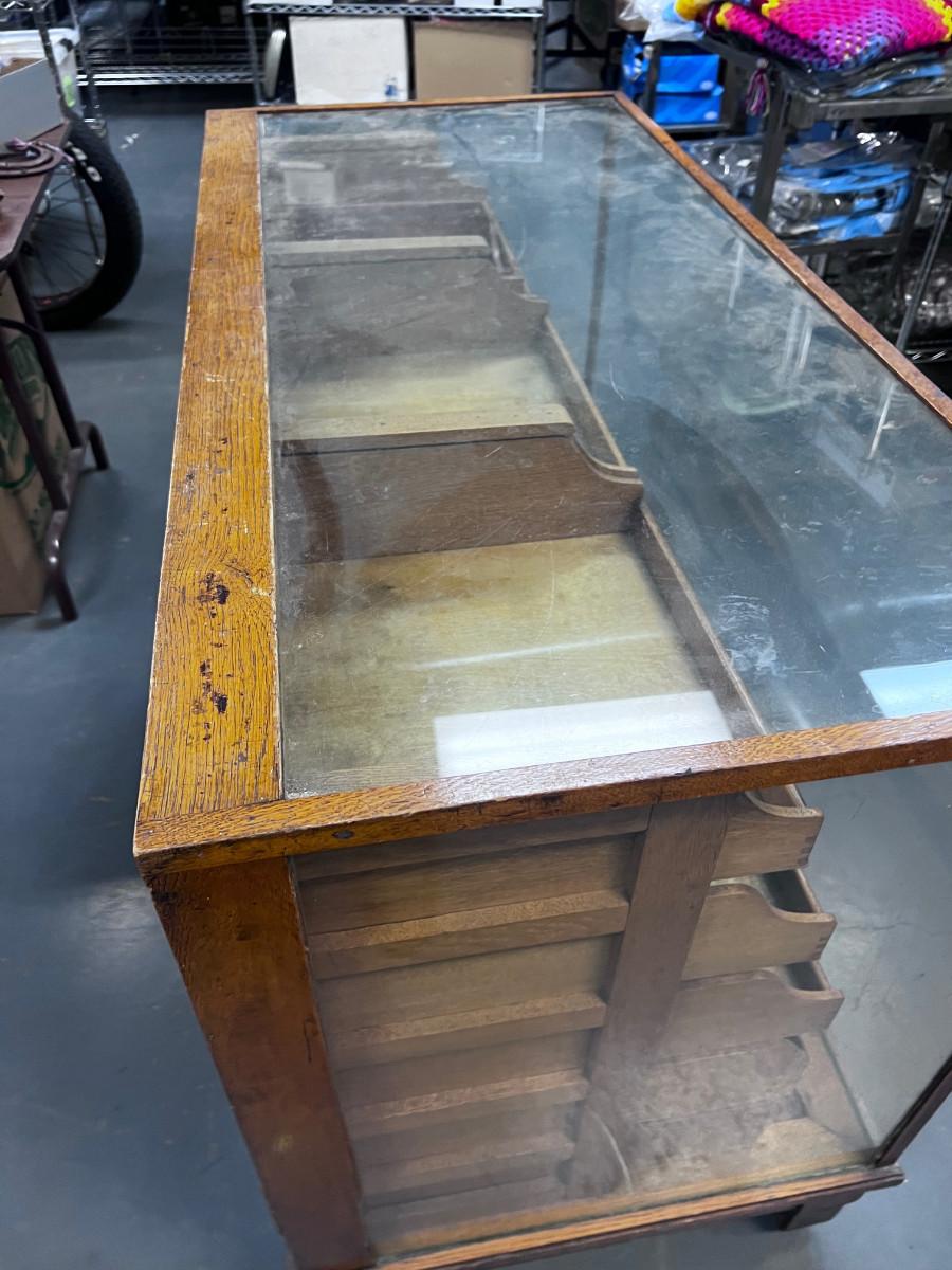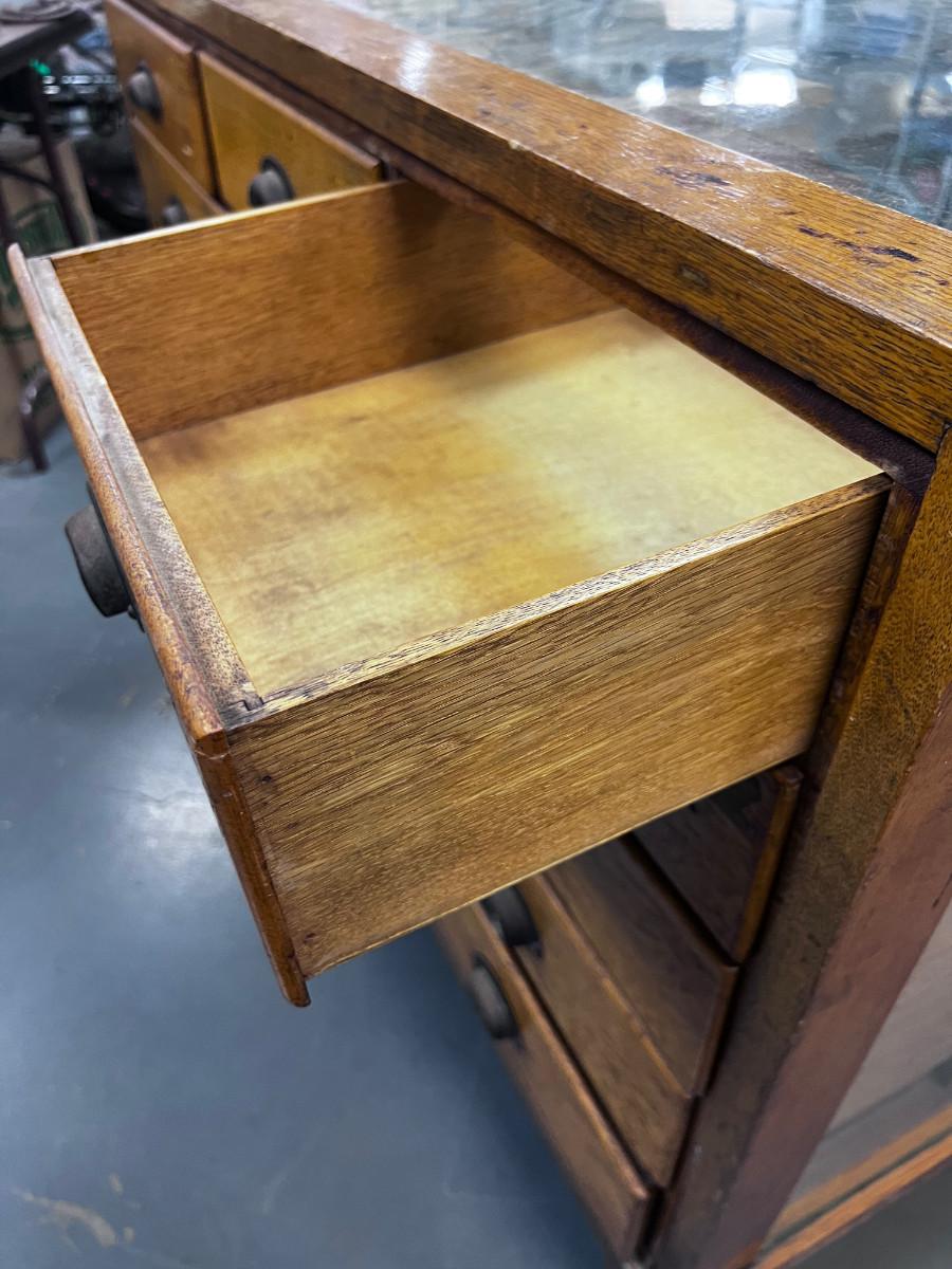 Antique Oak Glass Display Counter with Drawers From a Haberdashery or Hosiery Counter -