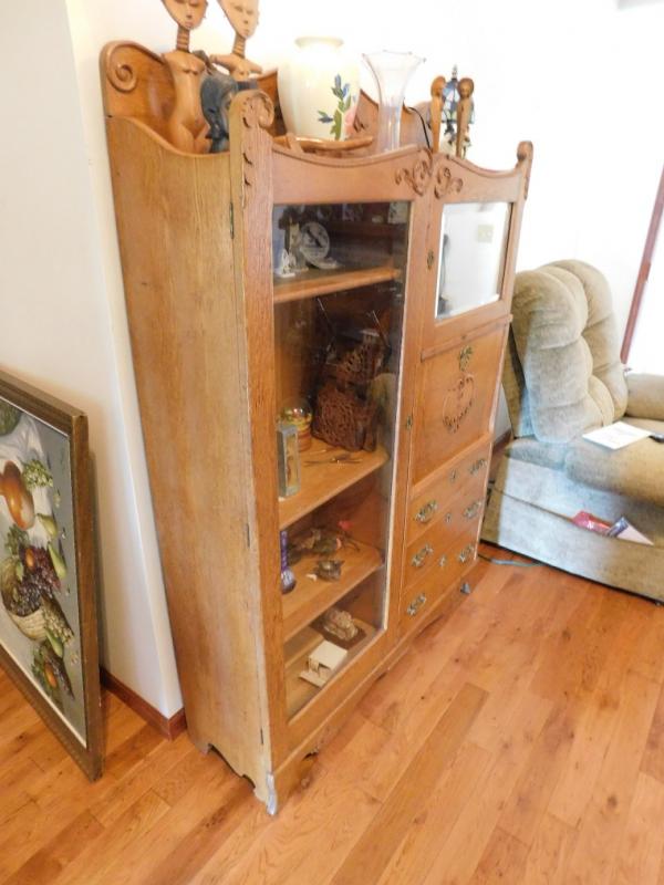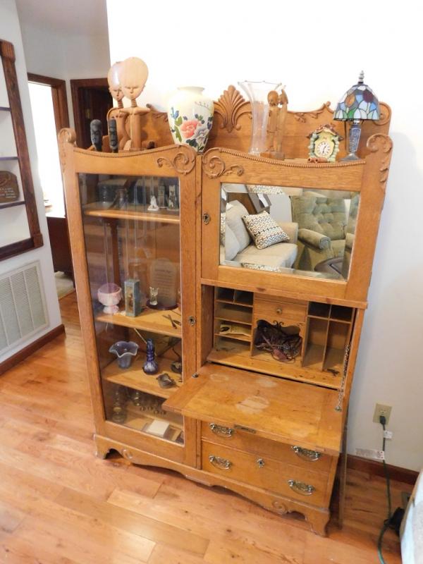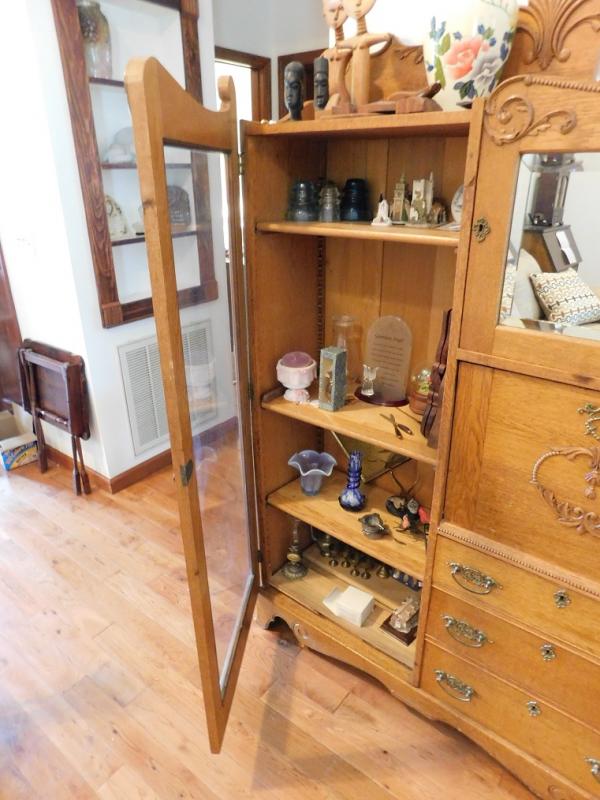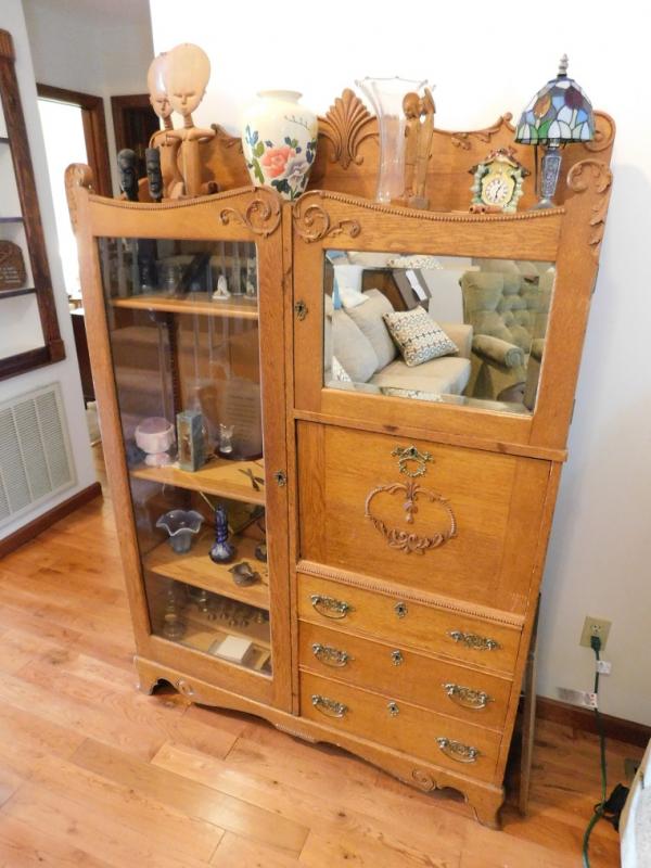Antique Oak Hutch and Secretary has some markings and scratches to surface.