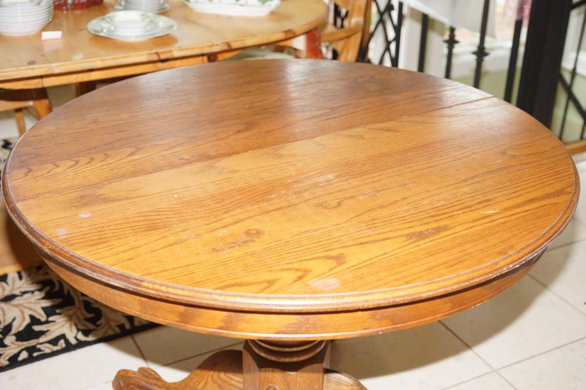 ANTIQUE 42" OAK ROUND TOP TABLE WITH CLAW/BALL FOOT